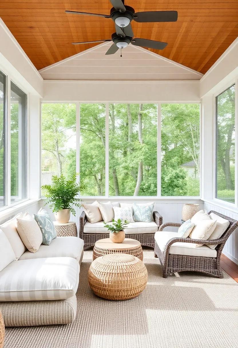 Transforming your screened porch into an oasis of tranquility can be as simple as carving out cozy nooks where comfort meets peace. Consider designs that invite you to curl up with a good book or simply pause for a moment of reflection. Use plush cushions, softly woven throws, and charming side tables to create these idyllic corners that encourage relaxation. You might choose natural materials like wicker or reclaimed wood to enhance the calming aesthetic, and pair them with whimsical fairy lights or soft lanterns that emit a warm glow during evening hours, making these spaces inviting both day and night.