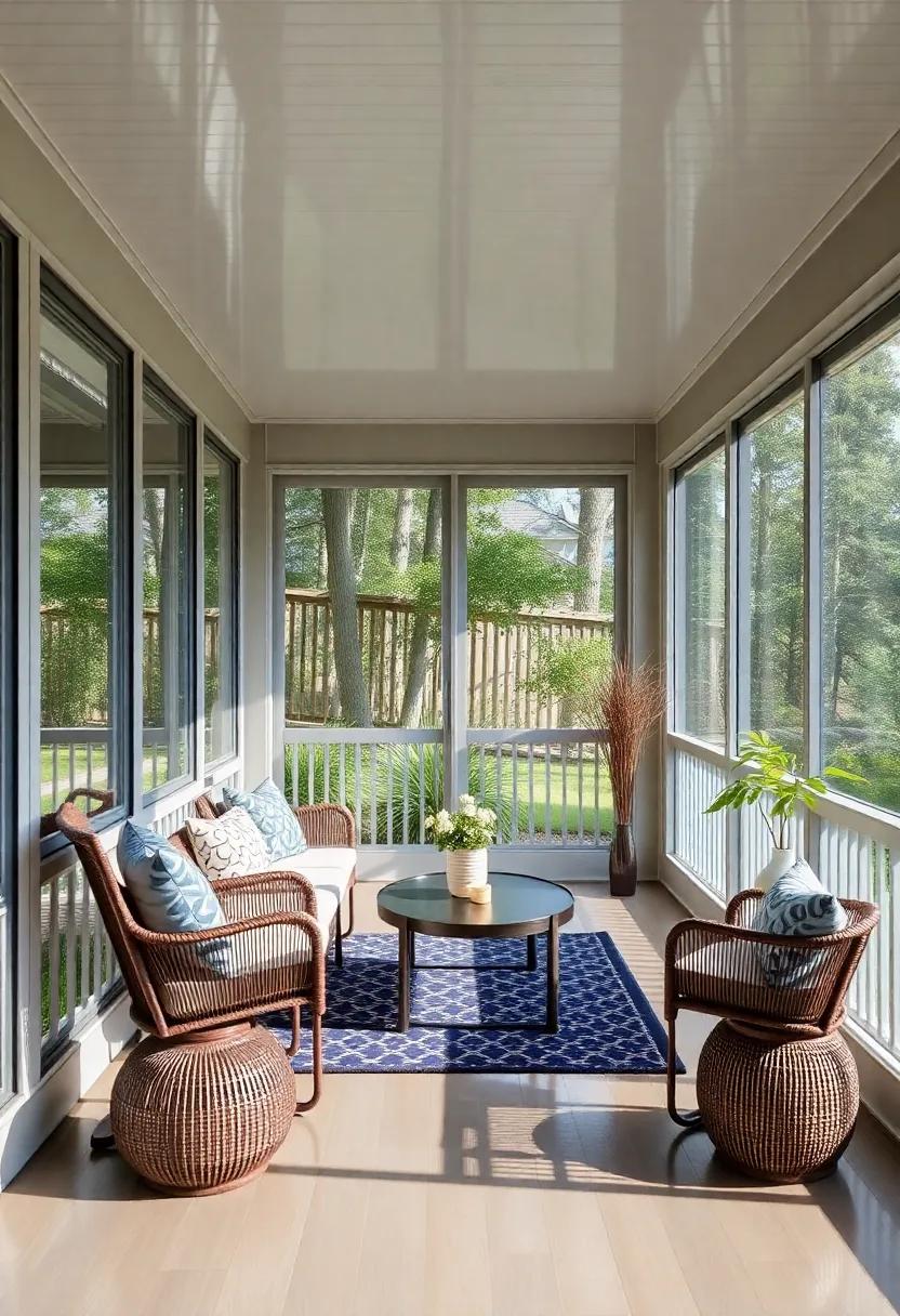Incorporating mirrors into your screened porch design can transform the space, lending it an airy feel while amplifying natural light. Strategically placed mirrors not only create a sense of depth but also reflect beautiful outdoor views, making your escape feel even more expansive. Consider using various shapes and styles to match your aesthetic; from antique frames that add a touch of vintage charm to sleek, modern designs that keep the look contemporary. Hang them opposite windows or in corners to maximize their light-enhancing effects.