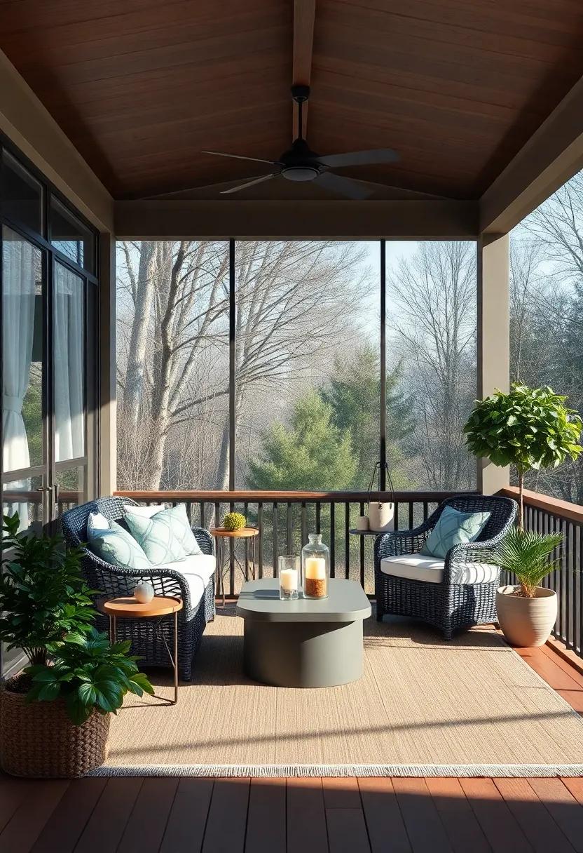 To further enhance the emotional resonance of your screened porch, think about integrating special mementos that bring a smile to your face. This could be anything from seashells collected on a beloved beach trip to a handmade pottery piece that celebrates craftsmanship. Create a cozy table where these treasures are displayed alongside candles or plants, fostering a sense of warmth and nostalgia. You might also consider a memory jar where you can jot down happy thoughts or experiences throughout the year, making it a living testament to the joy in your life.