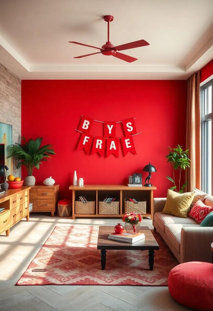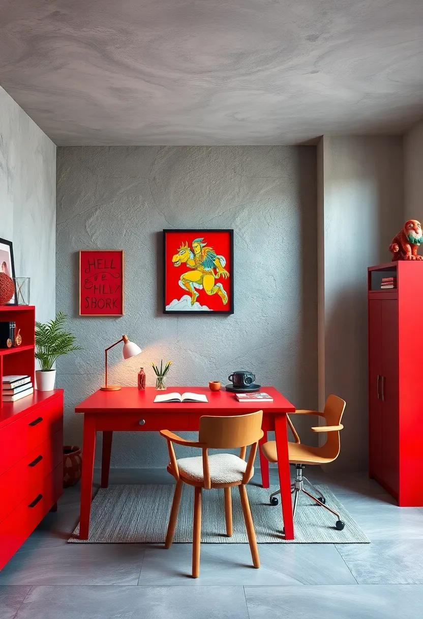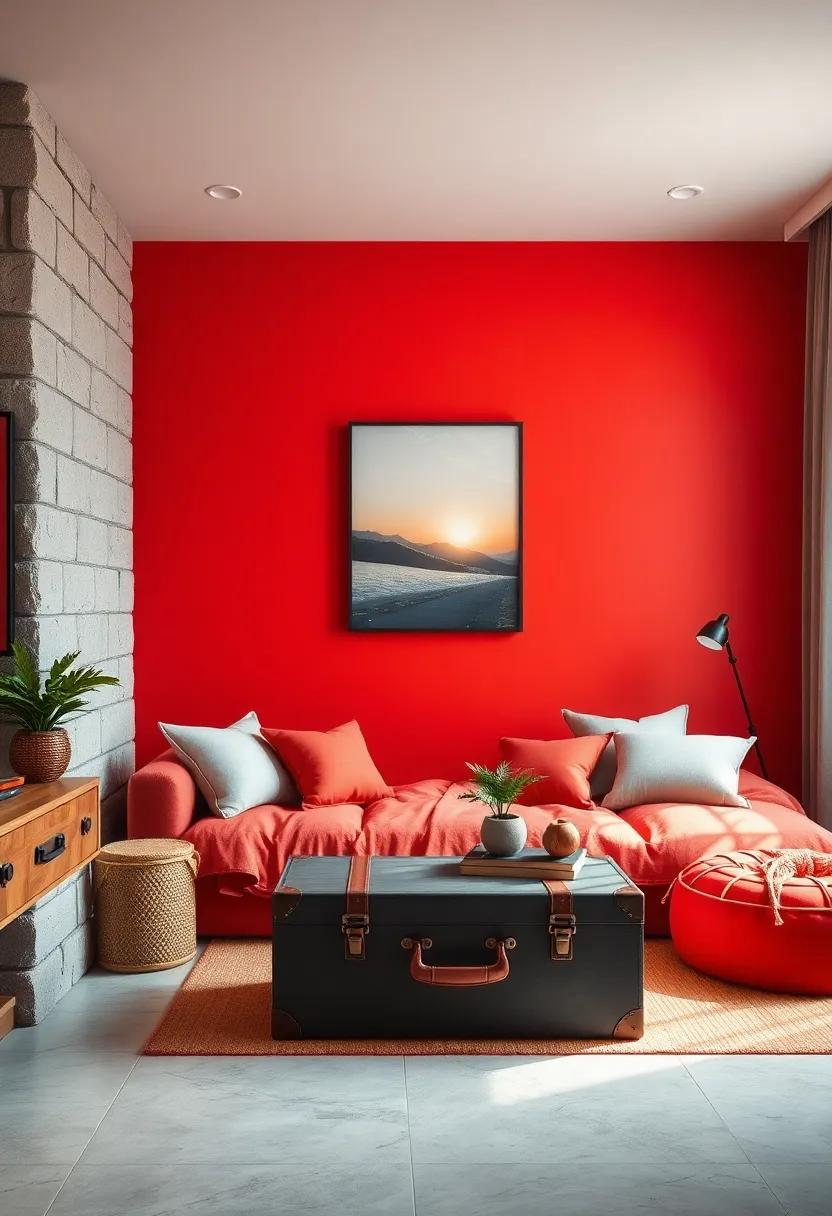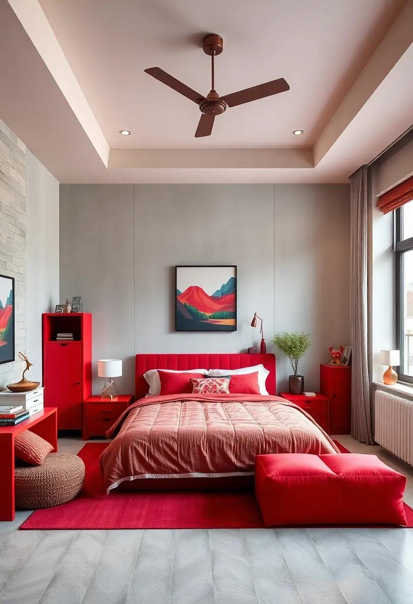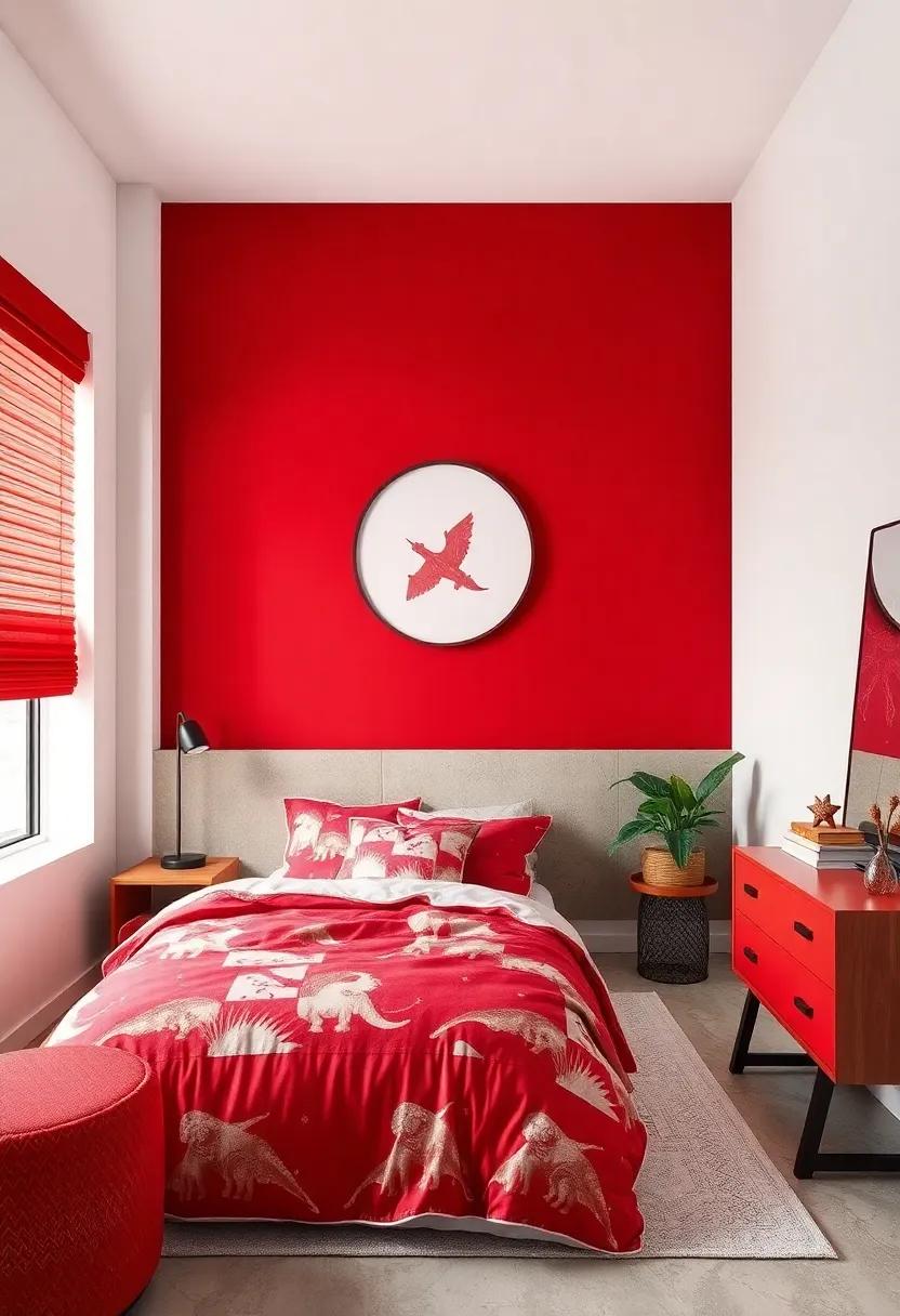 Use bright red accents in furniture, like a bold dresser or shelving unit, to create a striking focal point