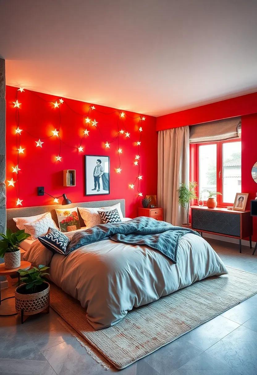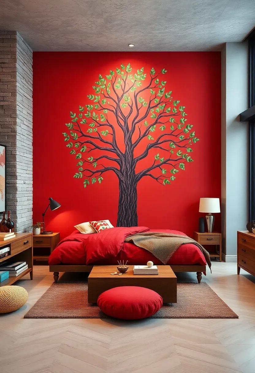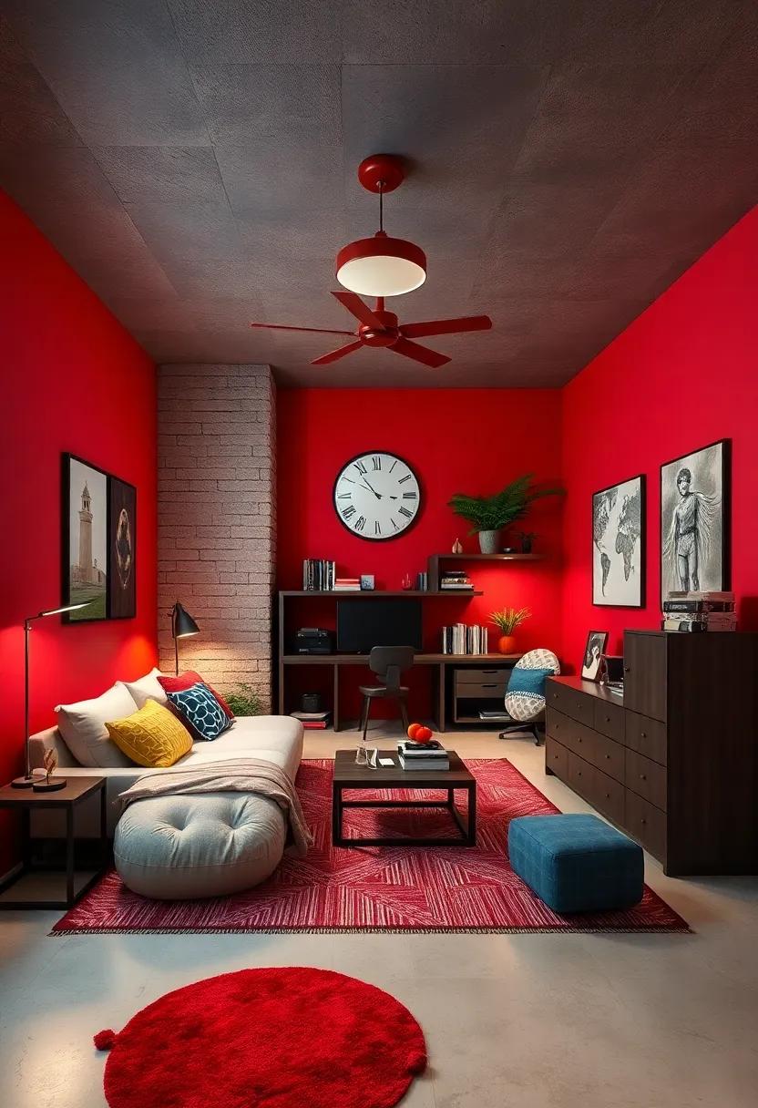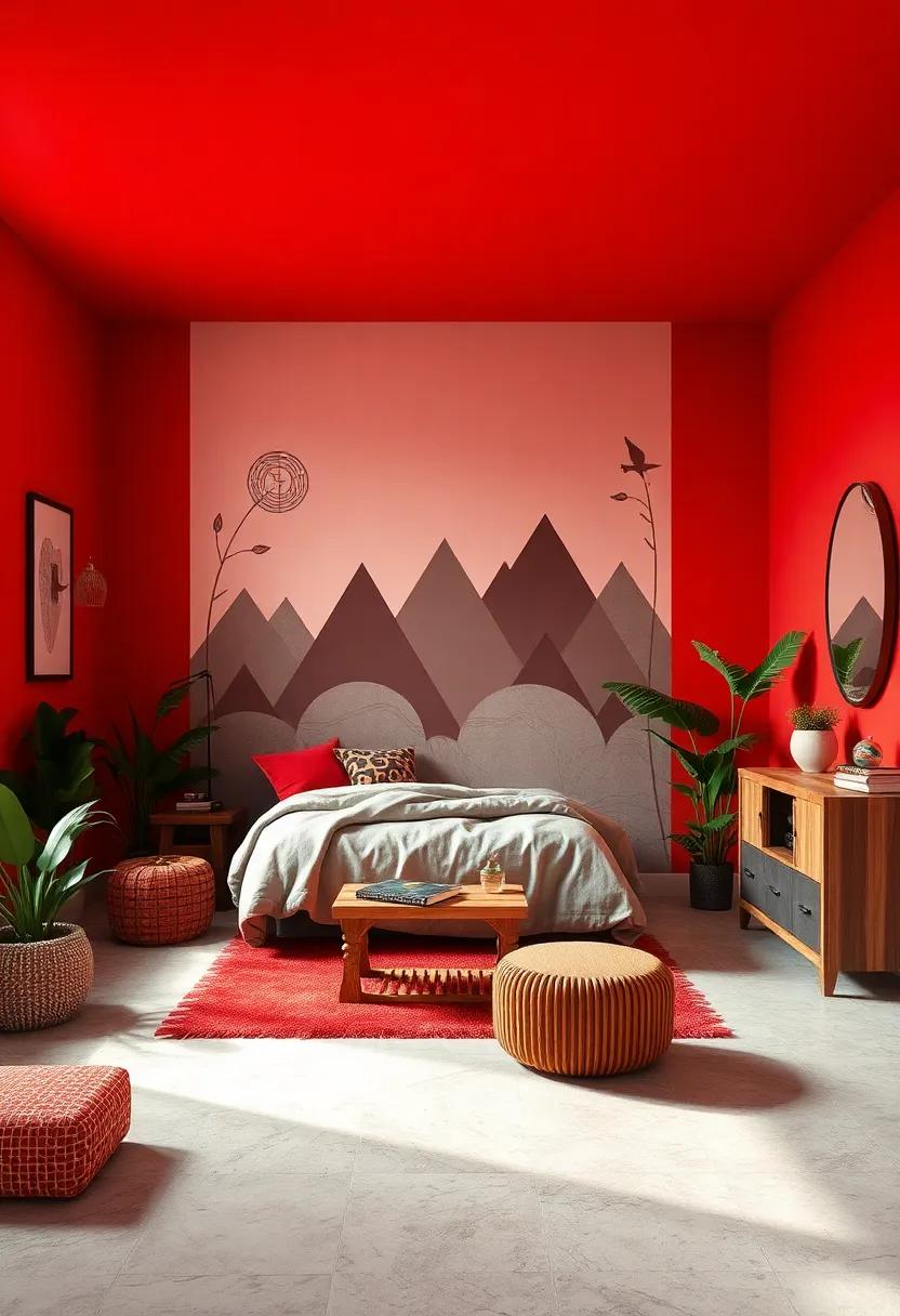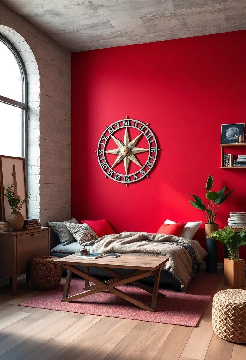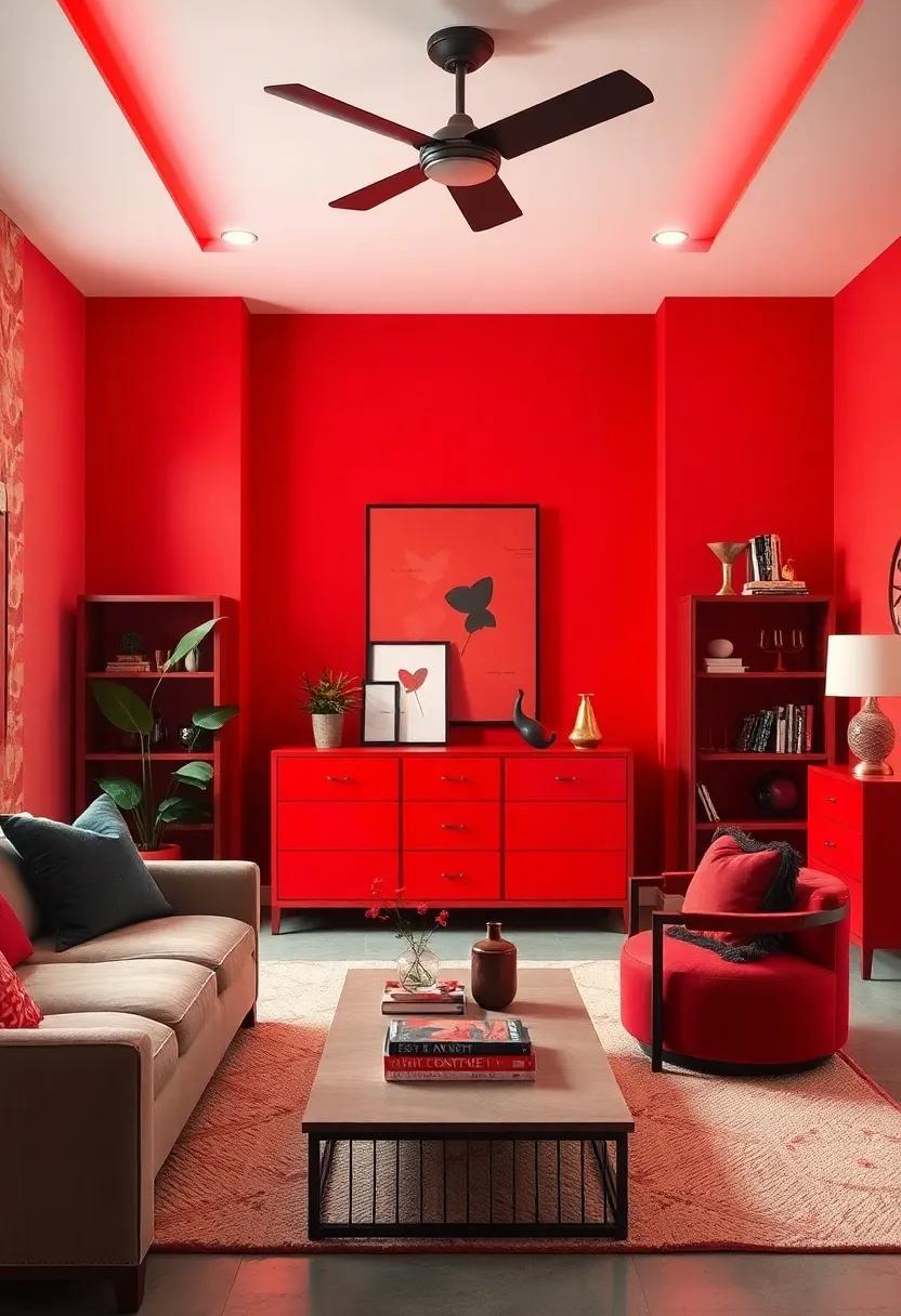 Use bright red accents in furniture, like a bold dresser or shelving unit, to create a striking focal point