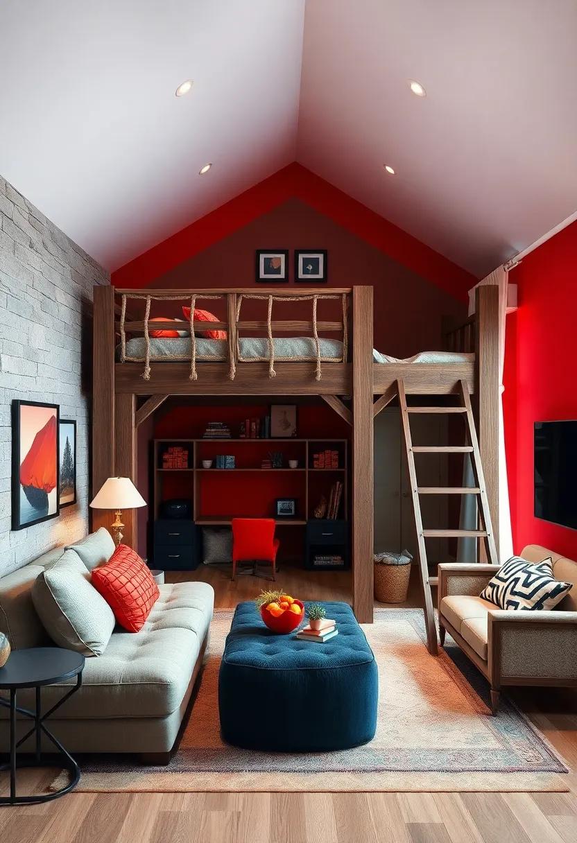 Use red furniture with built-in storage to keep the room tidy while maintaining a sense of adventure