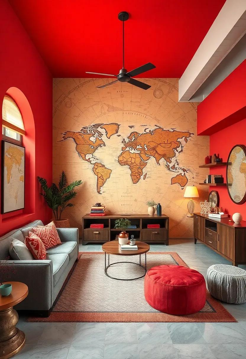 To ensure the vintage map becomes the room’s focal point, consider pairing it with bold, contrasting colors in furnishings and accessories. Classic wooden furniture or a rustic bookshelf can enhance the adventure aesthetic, while pops of red in bedding or curtains add a contemporary edge. A few strategically placed framed images of iconic explorers or travel quotes on the adjacent walls can further cultivate a sense of wanderlust, creating a cohesive and inspirational atmosphere. Mix in soft textures like plush rugs or cushions to balance the adventurous theme with comfort, ensuring that the room remains a cozy retreat for an active imagination.