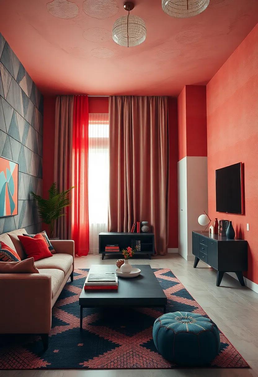 Incorporate bold geometric patterns on curtains or rugs to add a playful and dynamic element to the room