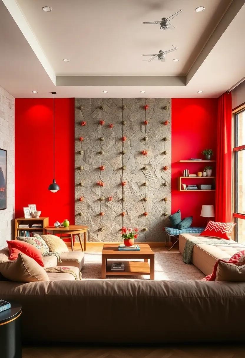 Transform a plain wall into an exhilarating vertical adventure zone with a wall-mounted climbing wall, designed safely for indoor play. By incorporating colorful climbing holds and varied grip sizes, you create an engaging experience that stimulates both physical fitness and imaginative play. This climbing wall can serve as a vibrant focal point in the room,with hues of deep red and bold primary colors contrasting against the painted wall,ensuring it catches attention while also blending seamlessly into the room’s adventurous theme.Remember to include ample padding at the base to ensure safety during those daring ascents!