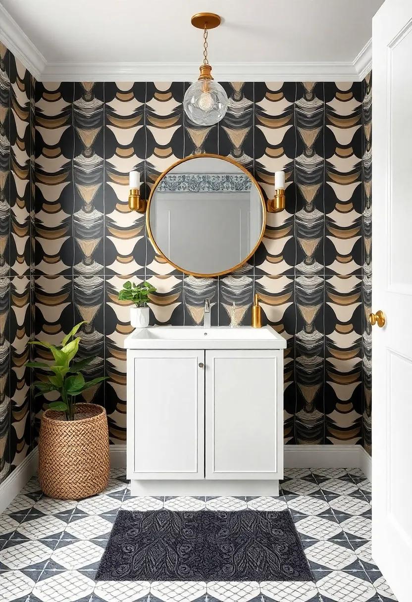 Pattern Play with Wallpaper: opt for bold, graphic wallpaper to add depth and personality, transforming your bathroom into a playful retreat