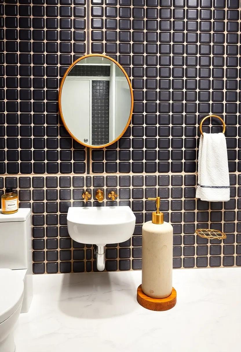Mix and Match Tiles: Use different styles and patterns of tiles in your bathroom—think polka dots with stripes—to infuse energy and creativity