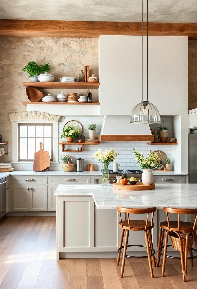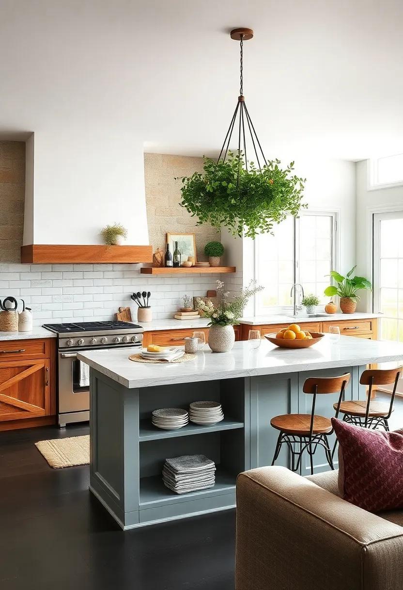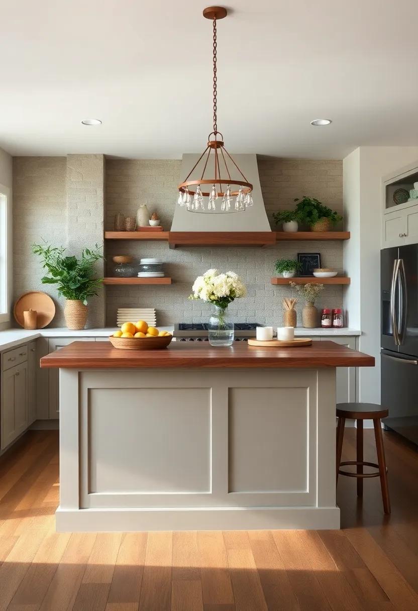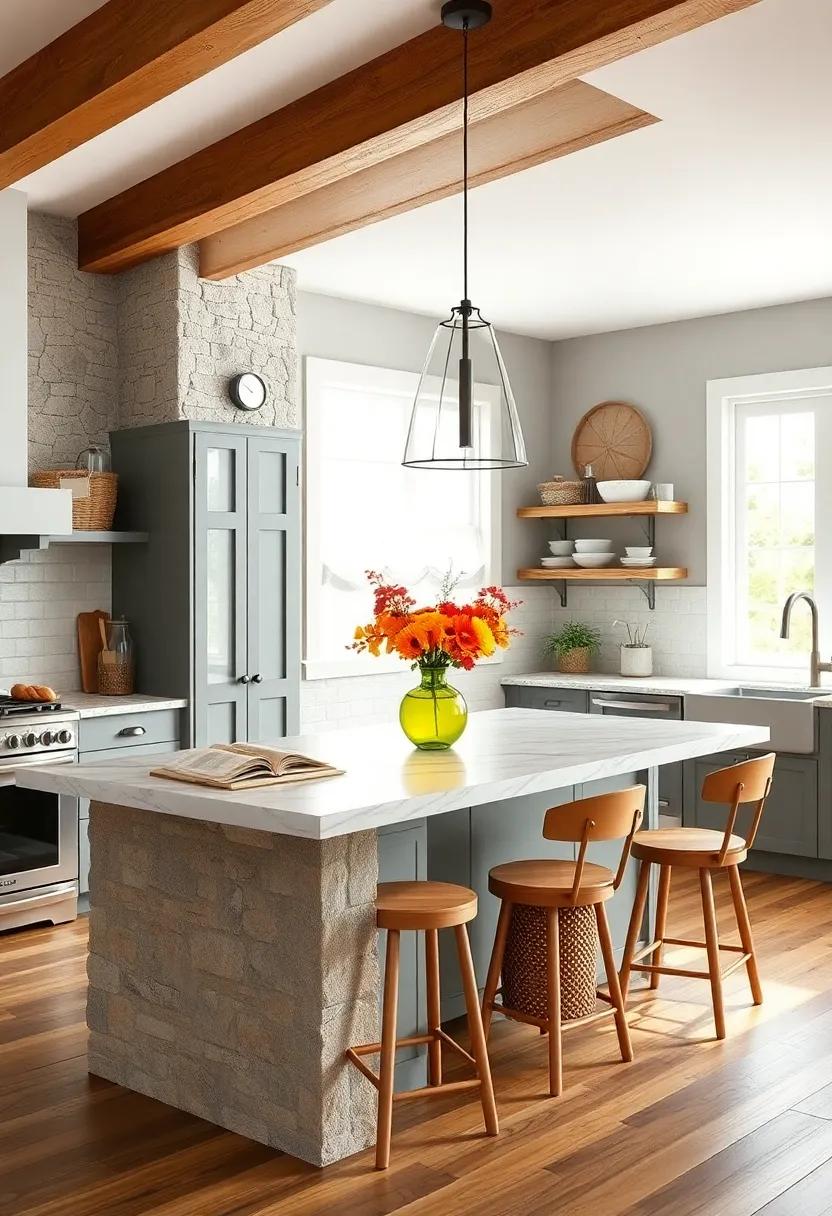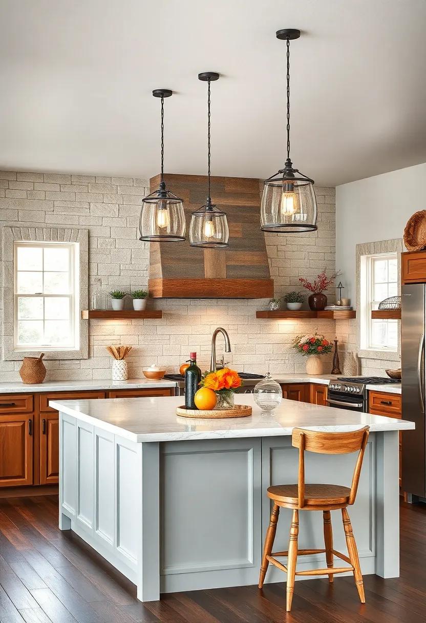 Incorporating natural elements into your kitchen island can instantly elevate the ambiance, offering a grounding influence that echoes the simplicity of rural life. Consider displaying a sculptural piece of driftwood as a centerpiece. Its unique texture and organic shapes bring an effortless charm, while also serving as a conversation starter. Pair it with an assortment of smooth, rounded stones in varying hues, which can be arranged in a shallow bowl for an inviting, rustic touch. This combination not only enhances your decor but also connects your kitchen to the great outdoors, evoking memories of serene country landscapes.