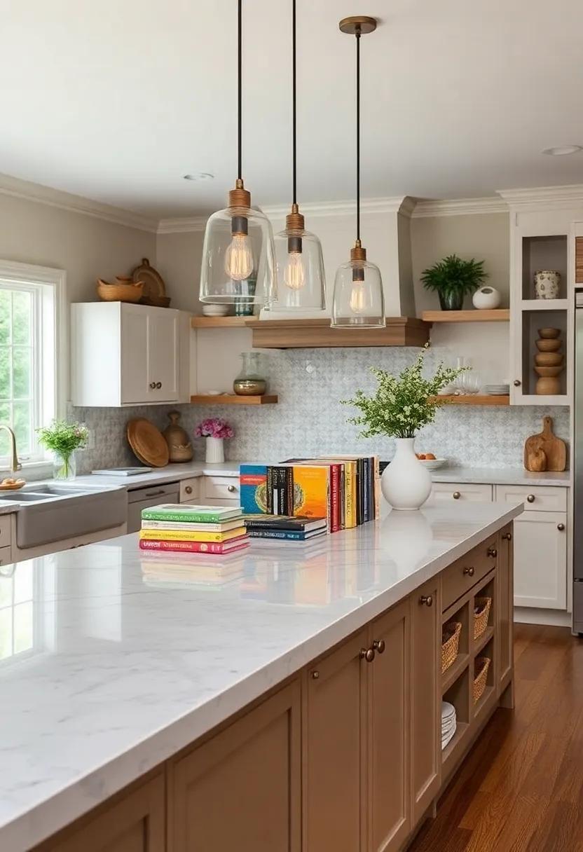 Colorful Cookbooks: Arrange an array of colorful cookbooks on your island for an accessible and artistic touch that showcases your culinary passions