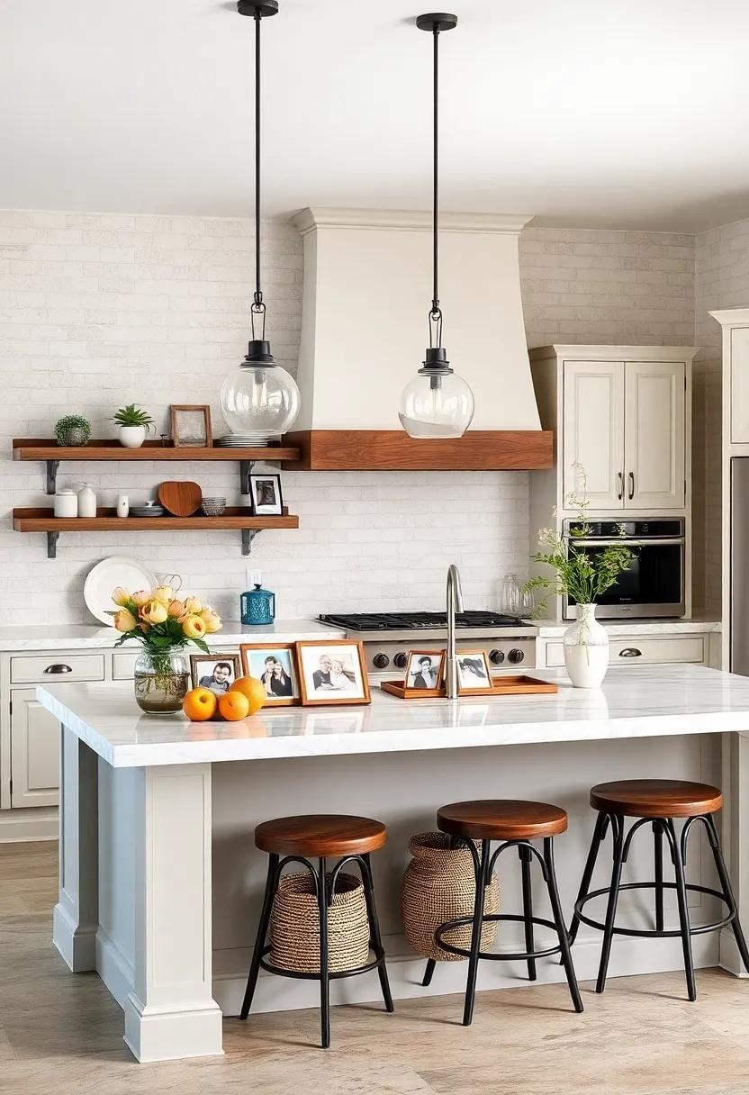 Infuse your kitchen with warmth and personality by showcasing family photos on your island. Start by selecting a few framed images that hold special meaning—whether it’s candid shots from family gatherings or memorable vacations. You can choose rustic wooden frames for a farmhouse vibe or opt for sleek,modern frames to contrast with traditional elements. For a cohesive look,consider using frames of the same color or style,creating a curated gallery effect that draws the eye. Arrange them on one side of the island to keep the functional space clear while serving as a beautiful focal point.