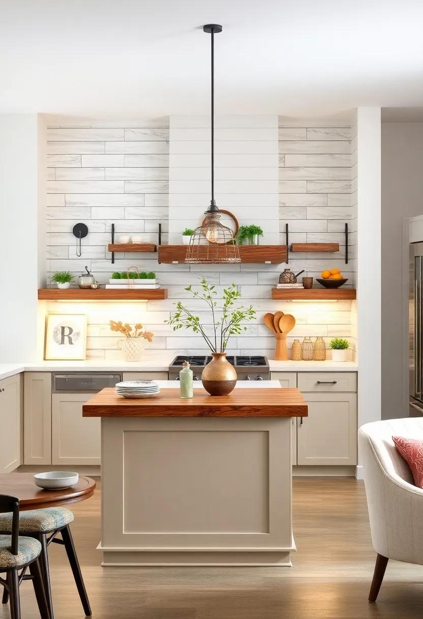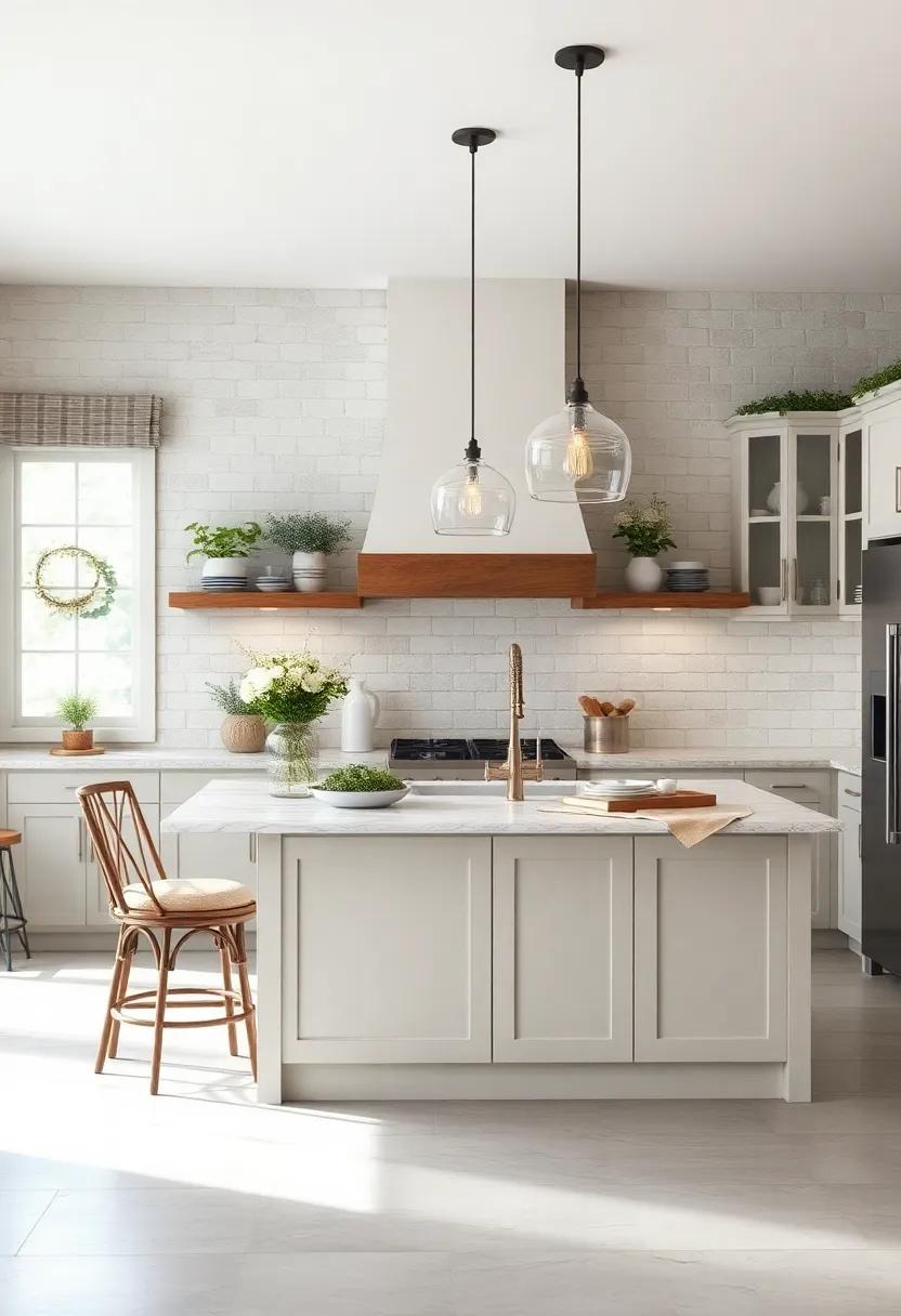Creating a visually captivating kitchen island begins with the artful combination of layered textures. Start with a woven mat underfoot—its natural fibers bring warmth and an inviting ambianceto the space. On top of that, introduce a rustic wooden cutting board that not only serves its practical purpose but also adds an organic touch. Consider utilizing metal accents such as a chic utensil holder or a decorative canister set, which not only emphasizes the modern farmhouse aesthetic but also adds a sleek contrast against the natural materials. This interplay of textures creates a dynamic visual experience, encouraging interaction and making the kitchen feel like the heart of the home.