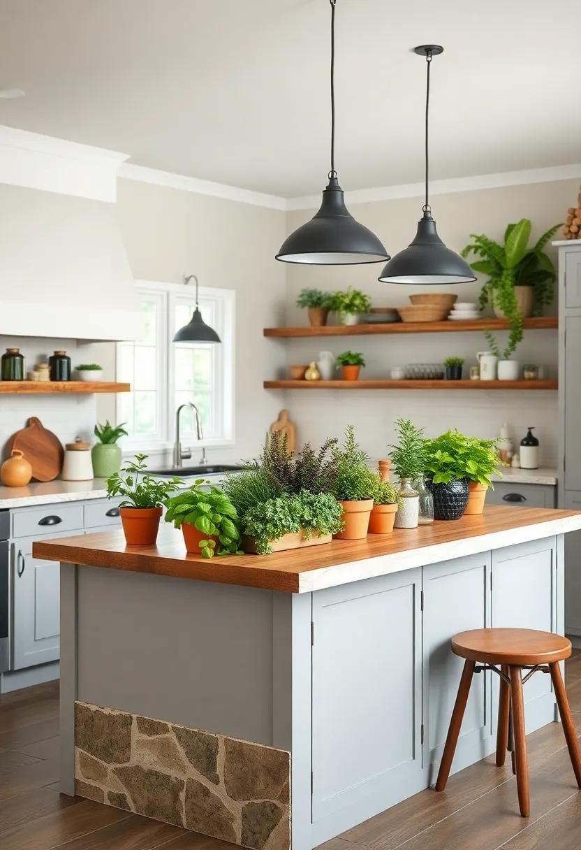 transform your kitchen island into a vibrant focal point by incorporating an array of potted herbs. not only do these plants elevate the aesthetic of your space,but they also serve a practical purpose. Imagine reaching for fresh basil, rosemary, or thyme as you whip up your favorite dish, infusing your meals with flavors that are unmatched by store-bought alternatives. You can group these herbs in varying heights and textures to create an eye-catching display or arrange them in uniform pots for a more streamlined look. Opt for rustic terracotta pots, sleek ceramic containers, or even repurposed vintage tins to reinforce that charming farmhouse vibe.