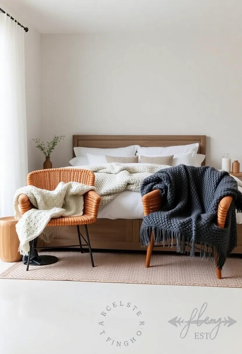 Add Cozy Throws: Drape chunky knit or fleece blankets over your bed and chairs for instant warmth and comfort