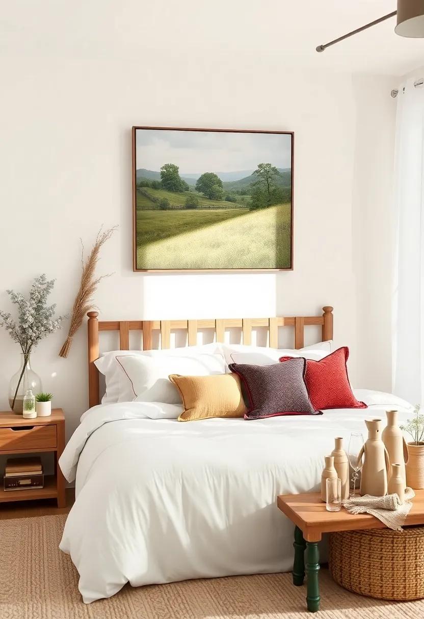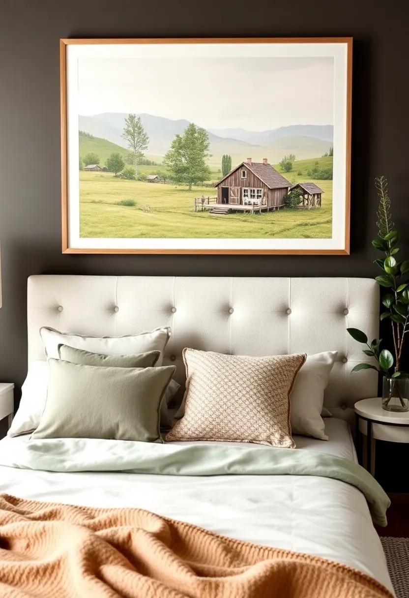 To truly embrace the farmhouse aesthetic in your bedroom, consider the impactful role that art can play in completing the look.Artwork featuring pastoral scenes or botanical prints can bring a refreshing touch of the countryside right into your space. These pieces can definitely help you establish a calming atmosphere, reminiscent of lazy afternoons spent in scenic meadows or snug gardens. Look for artwork that incorporates a soft color palette with greens, browns, and muted florals to echo nature, allowing your bedroom to radiate warmth and serenity.