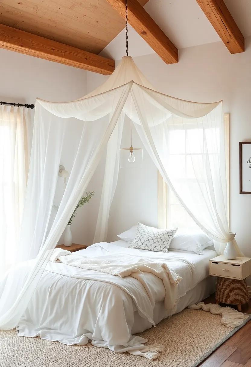 Create a dreamy atmosphere in your farmhouse bedroom by introducing a fabric canopy above your bed. This simple addition transforms the space into a serene retreat, enveloping you in comfort and charm. Choose from soft, airy materials that gently filter light, enhancing the cozy ambiance. Popular fabric choices include: