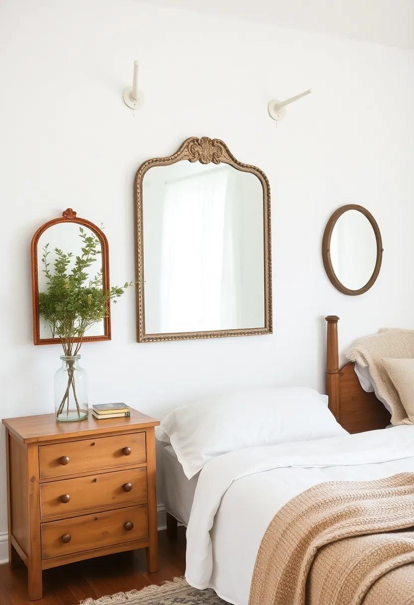 Incorporating vintage mirrors into your farmhouse bedroom can dramatically transform the space by enhancing its natural light and creating an inviting atmosphere. Choose a few unique pieces, each with its own charm, to scatter around the room and reflect sunlight during the day. Consider placing one above a rustic dresser or hung on a wall adjacent to a window to maximize the light effect. This strategic placement will not only brighten your room but also invoke a sense of tranquility, creating the perfect backdrop for your cozy retreat.