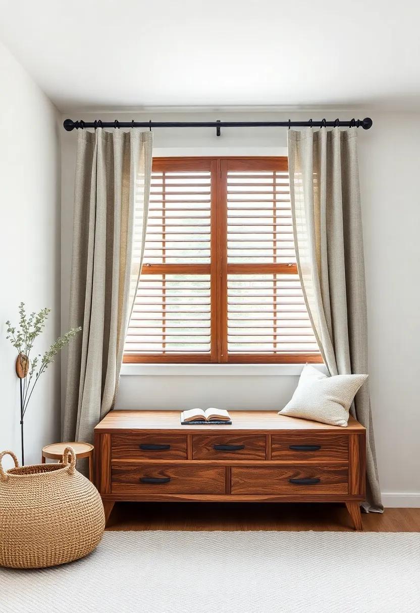 Implement Window Treatments: Soft linen curtains or wooden blinds can provide privacy while adding to the rustic atmosphere