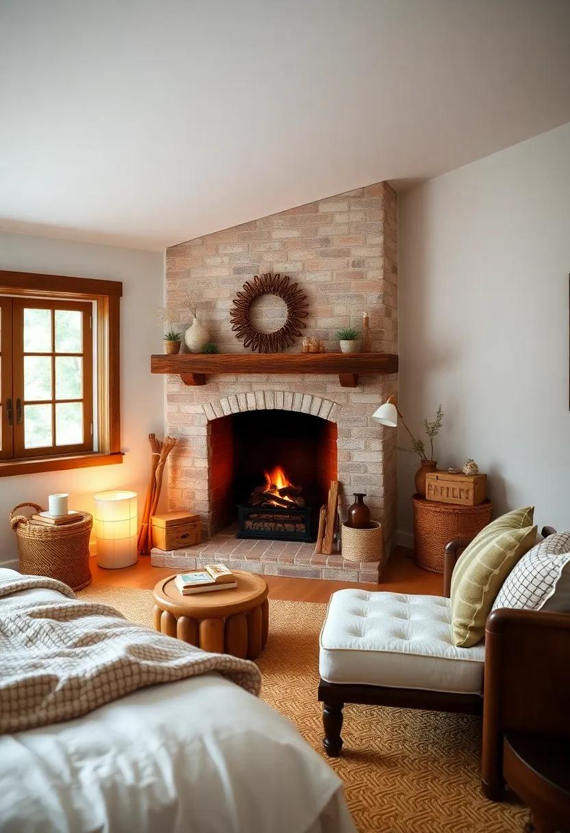 Imagine curling up with your favorite book under a blanket, the gentle crackling of a fire filling the room with warmth and a soft glow. Whether you opt for a traditional wood-burning fireplace or a modern electric version, incorporating a fireplace into your farmhouse bedroom elevates both comfort and aesthetics. The natural elements of wood combined with the inviting glow of fire create a serene retreat that invites relaxation and tranquility.Surround your fireplace with rustic elements like weathered wood mantels or vintage iron tools to enhance that cozy atmosphere.