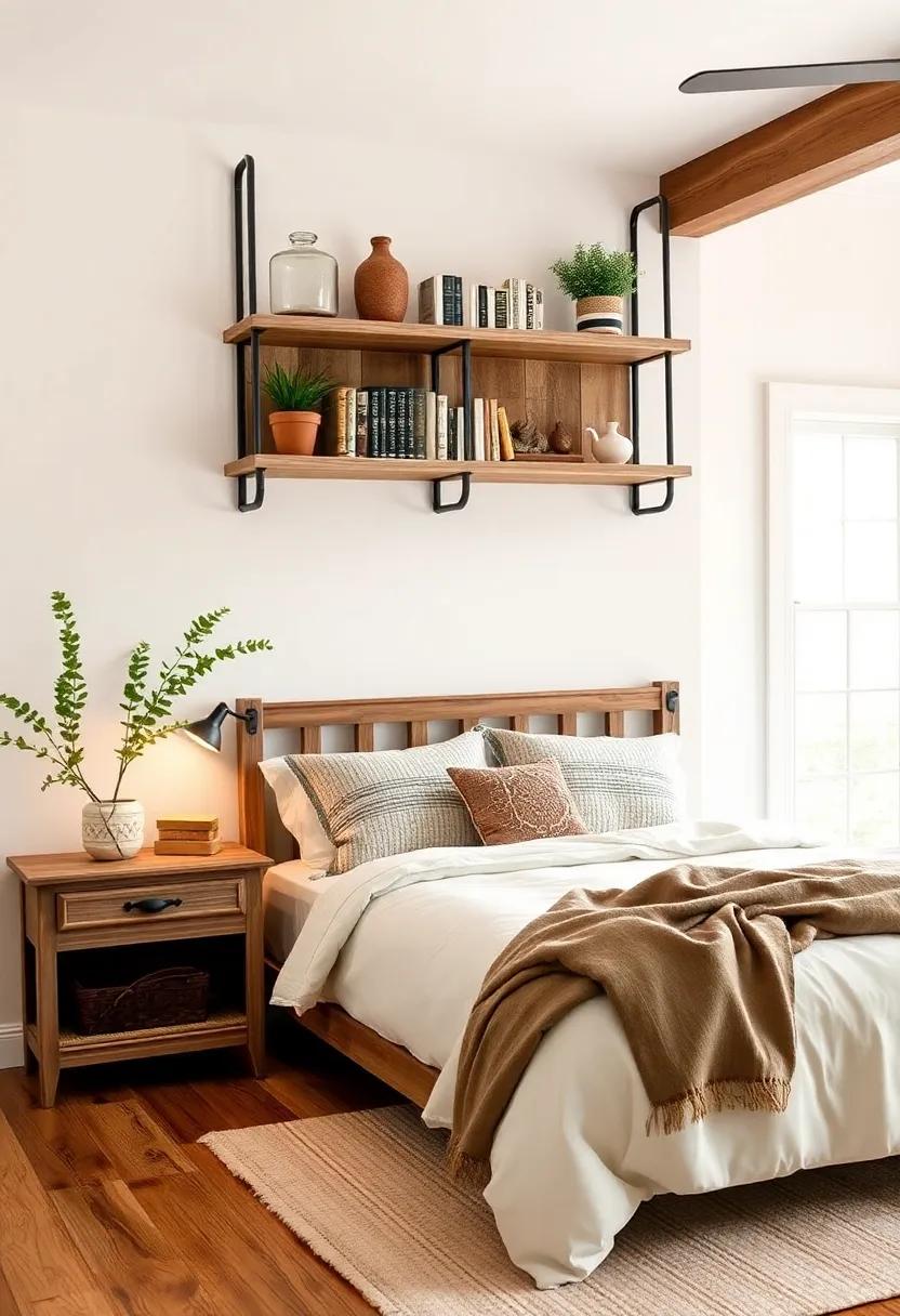 incorporating rustic shelving into your farmhouse bedroom design not only enhances the aesthetic but also provides practical storage solutions. Consider the charm of floating wooden shelves,which can be used to display collectibles,potted plants,or your favorite books. The beauty of these shelves lies in their versatility; you can adjust their height and layout according to your space, creating a personalized look that reflects your style. Pair them with warm,ambient lighting to highlight your treasured items and introduce a cozy feel to your room.