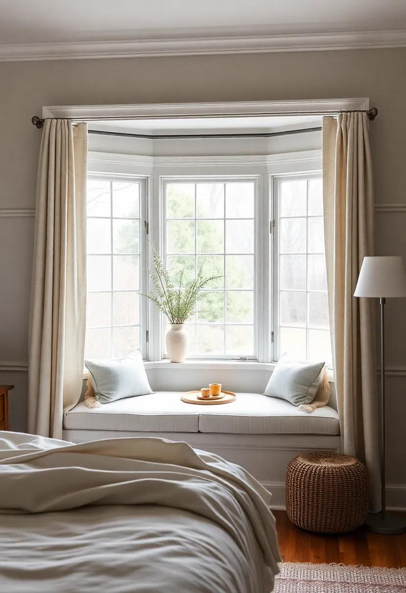 Transform your farmhouse bedroom with a classic window seat that invites relaxation and serenity. This charming nook not only serves as a stylish element in your decor but also acts as the perfect spot for sipping morning coffee or indulging in evening contemplation. Choose a design that complements your overall aesthetic, whether it’s a cushioned bench draped in soft fabrics or a wooden seat adorned with vintage pillows. Layer it with textures like a cozy throw and a soft rug beneath to immerse in comfort as you gaze outside.