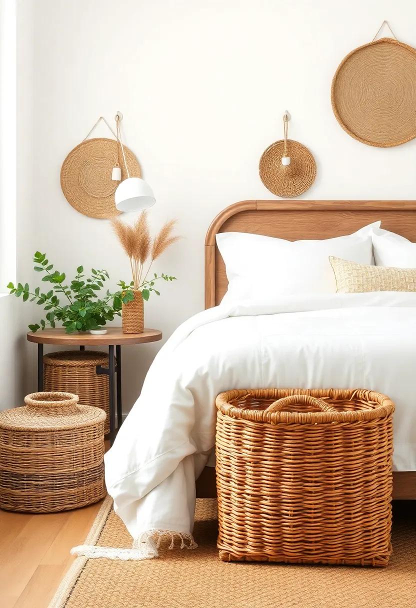 Use Woven Baskets: Incorporate woven baskets for practical storage while enhancing the organic elements of your design