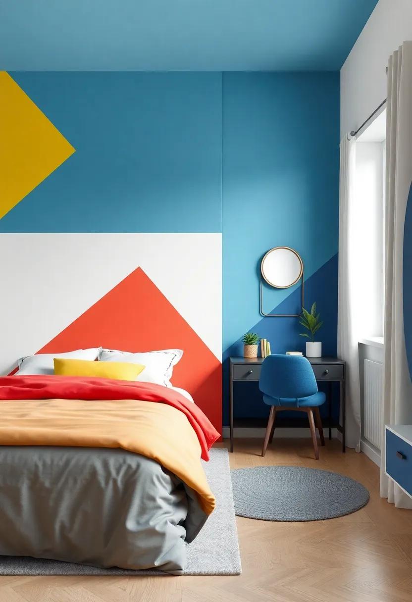 Color Block Design: Play with bold colors and geometric shapes to create an eye-catching, stylish bedroom that reflects your personality