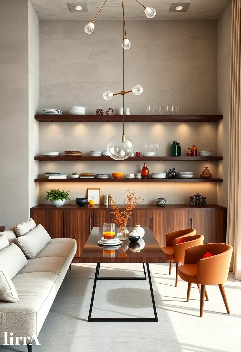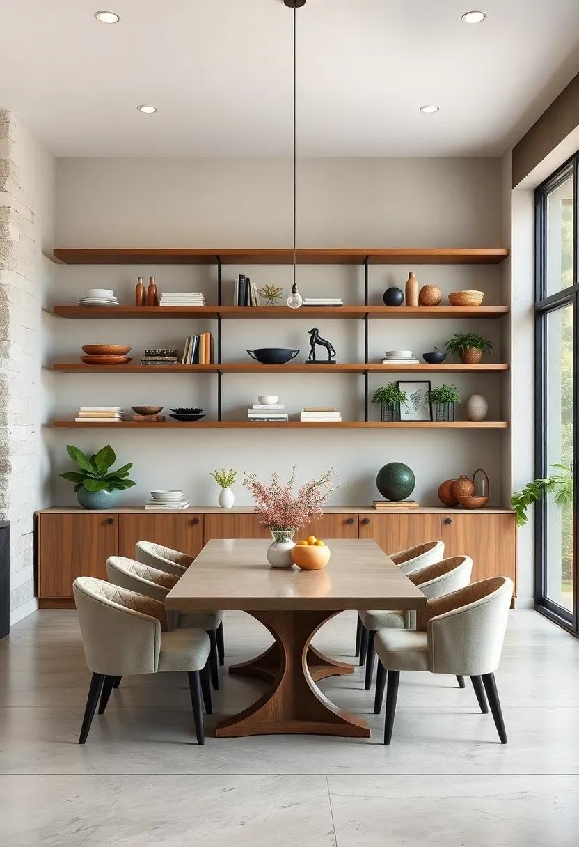 Embrace sophistication by opting for slim,sleek shelves that serve as a canvas for carefully curated items. Select a few minimalist pieces, such as a stunning vase or a set of sculptural bowls, that reflect your aesthetic without dominating the visual space. This approach not only creates a sense of harmony but also allows your dining area to breathe. Pair your shelves with neutral wall colors to enhance the clean lines and understated elegance, making every piece feel intentional and thoughtfully placed.