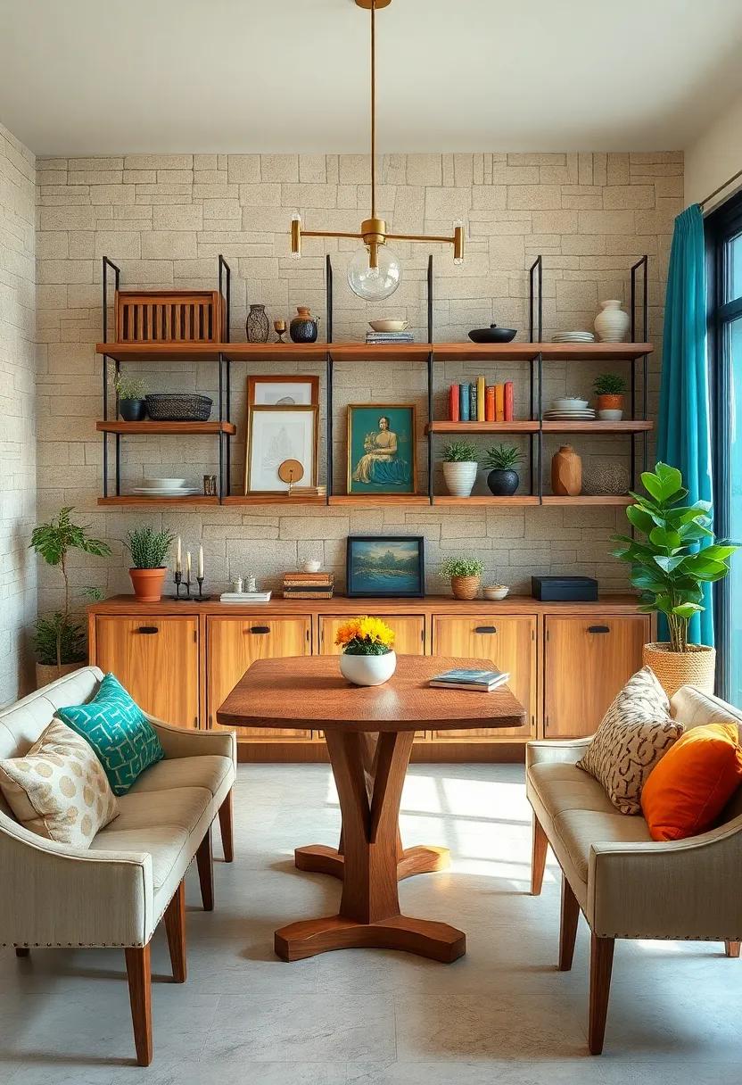 By curating your collections on these eclectic shelves, you’ll create a unique narrative that echoes the places you’ve visited and the memories you’ve made. Choose to display colorful ceramics from your time abroad alongside local finds like hand-painted pottery,each offering a glimpse into your personal journey. For added visual interest, consider a small table or a sideboard beneath your shelves to round out the design. Your assembled treasures tell a story, and the varying heights and textures of shelves add depth and intrigue to your dining area. Here are some variations to inspire you: