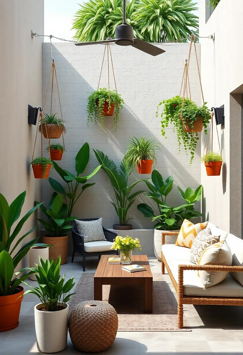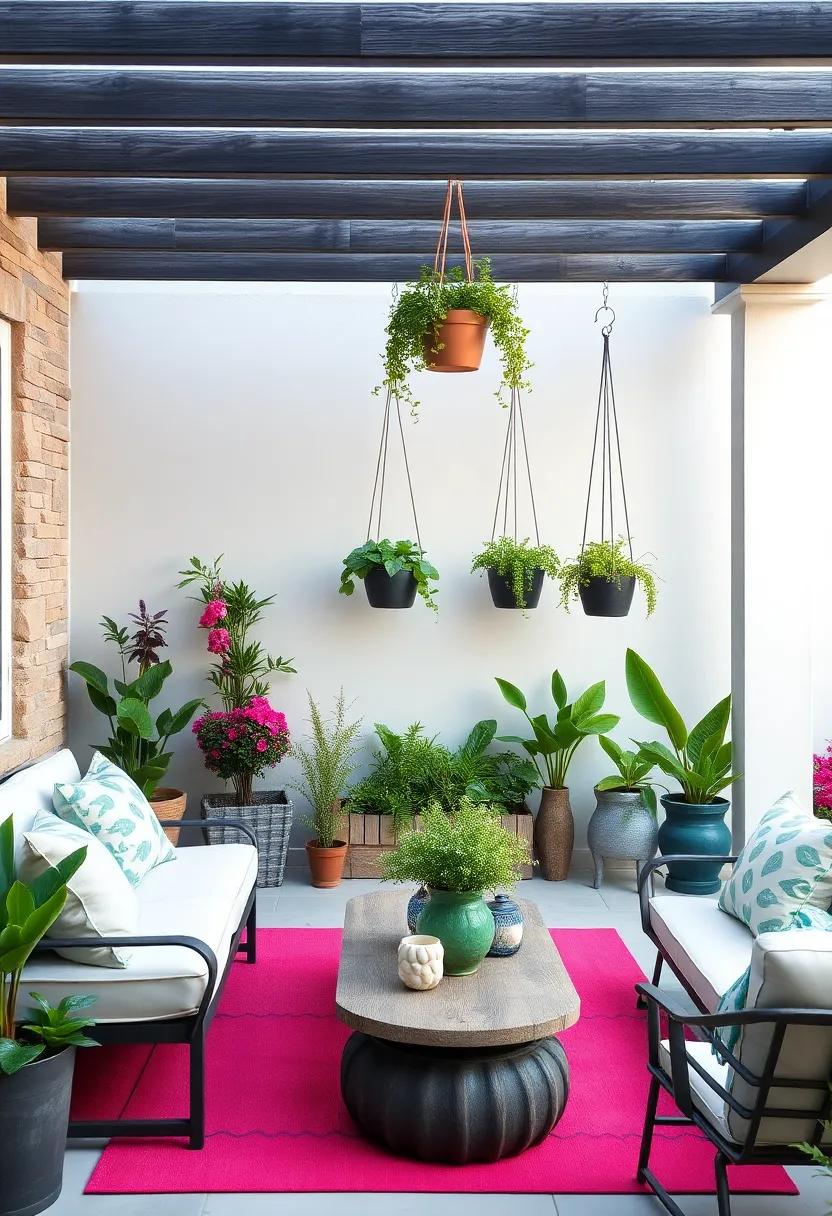 Transform your small patio into a vibrant retreat by selecting brightly colored hanging planter pots. The exuberance of colors can instantly uplift the space, making it more inviting and cheerful. Imagine an array of pots in electric blue, sunflower yellow, and passion fruit orange, all dancing in the breeze. Hanging different shades at various heights not only adds visual interest but also creates a whimsical atmosphere that beckons relaxation and joy.