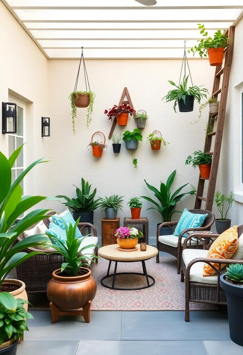 Incorporate vibrant planters in various shapes and sizes for visual interest. Consider filling them with a range of plant types, from flowery hanging plants that bloom through the seasons to lush trailing greenery. This unique setup allows you to maintain an organized yet fun atmosphere, ideal for entertaining friends or simply enjoying your coffee in peace. For an extra layer of charm, mix and match colorful pots that resonate with your patio’s theme, ensuring a cohesive yet dynamic look that enhances your outdoor living experiance.