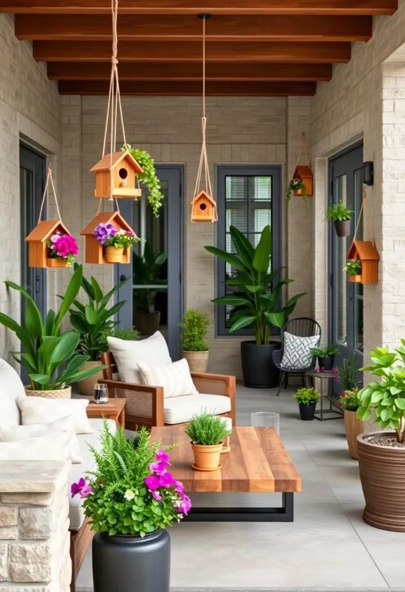 DIY Birdhouse Planters: Transform traditional birdhouses into creative planters by incorporating flowers that attract local wildlife to your patio