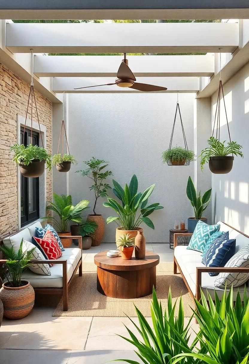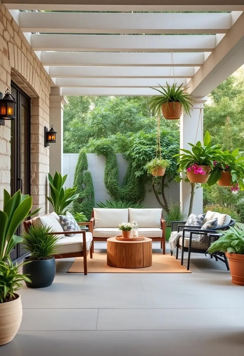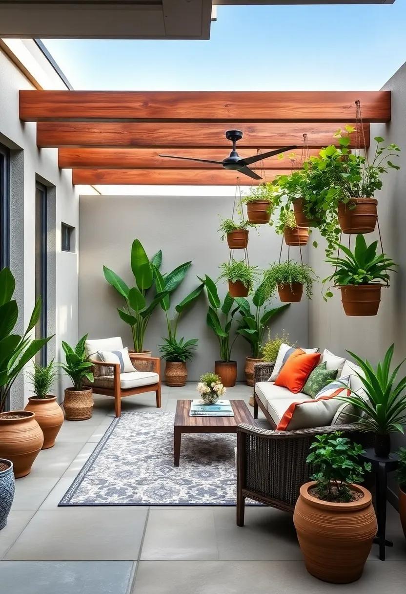 Sleek Modern Planters: integrate modern geometric hanging planters to complement a contemporary patio design while providing a fresh take on greenery