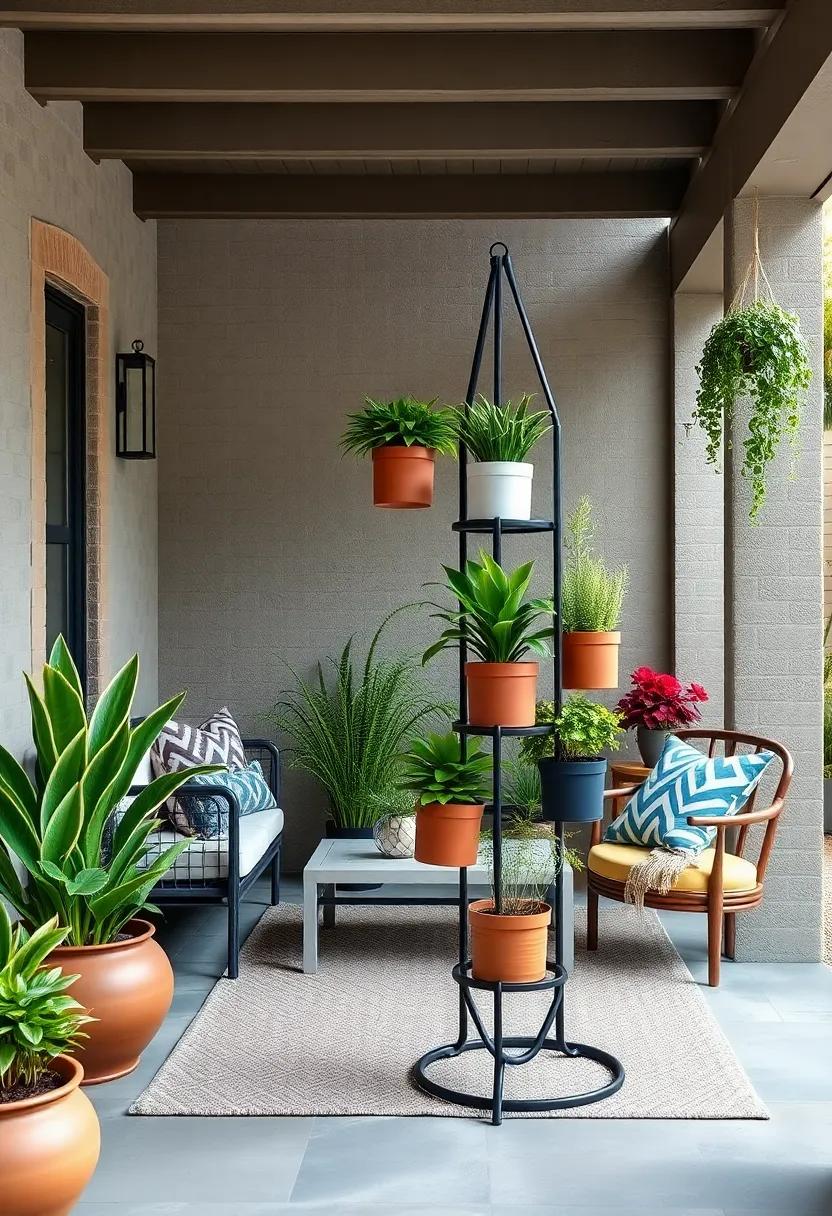 Elevate your small patio’s charm by incorporating a tiered plant stand that allows you to showcase an array of planters at varying heights. This design not only enhances the visual appeal of your space but also creates depth and dimension. You can choose a multi-level rack made from materials like wood, metal, or even repurposed items to fit your style. Place lush greenery on the top tier for a dramatic effect, while trailing plants can hang down on lower levels, creating a stunning cascade of foliage that invites the eye to wander.