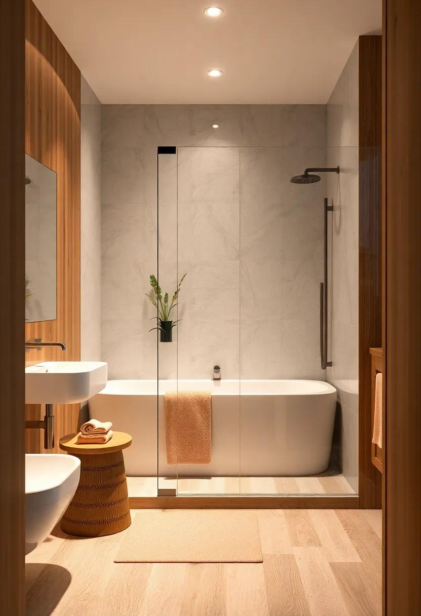 To further promote a sense of openness, opt for neutral color palettes and simple geometric patterns in tile and accessories. Use large mirrors to reflect light and create an illusion of depth, while a glass shower enclosure can help to open up the space visually. Incorporating multi-functional fixtures, such as a vanity with built-in storage or a shower-toilet combo, ensures that every square inch is utilized efficiently. With thes thoughtful strategies, even the smallest of bathrooms can embody the essence of minimalist design.