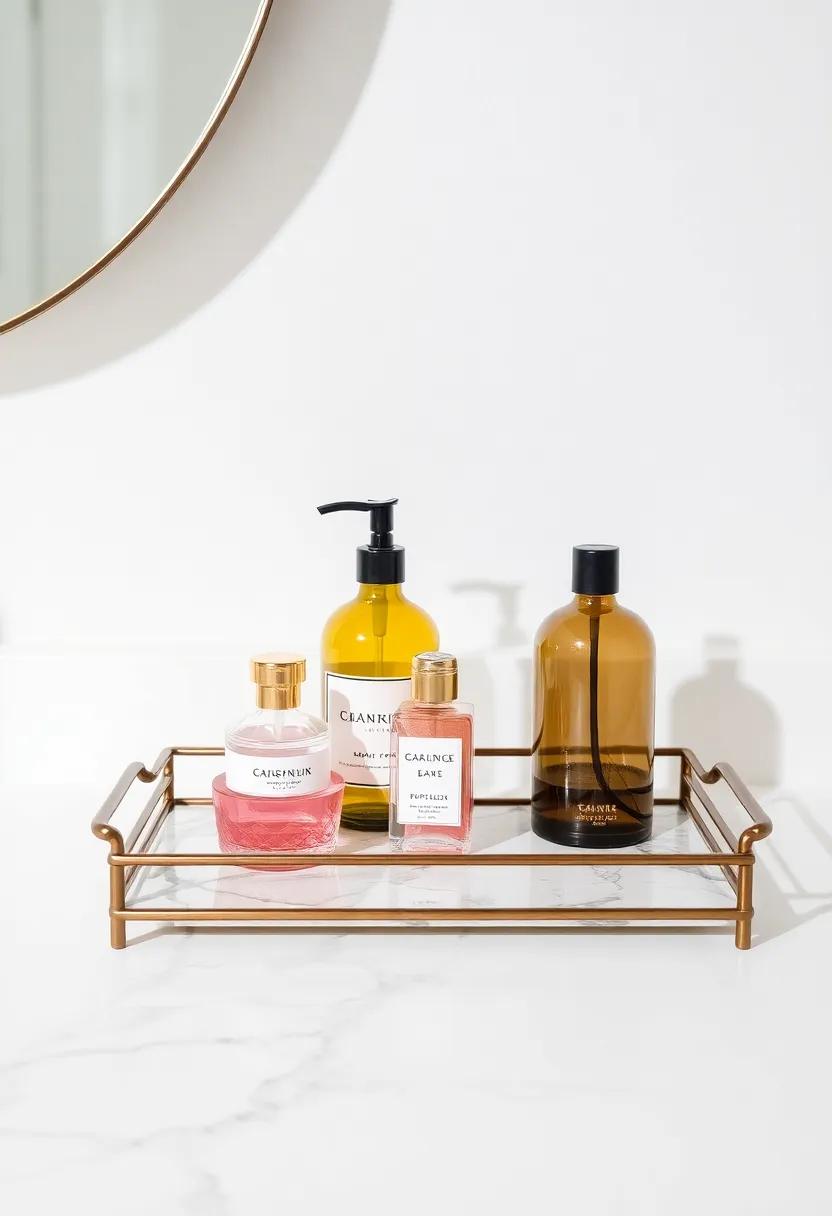 Decorative Tray: A chic tray can organize essentials like perfumes and soaps while serving as a decorative focal point