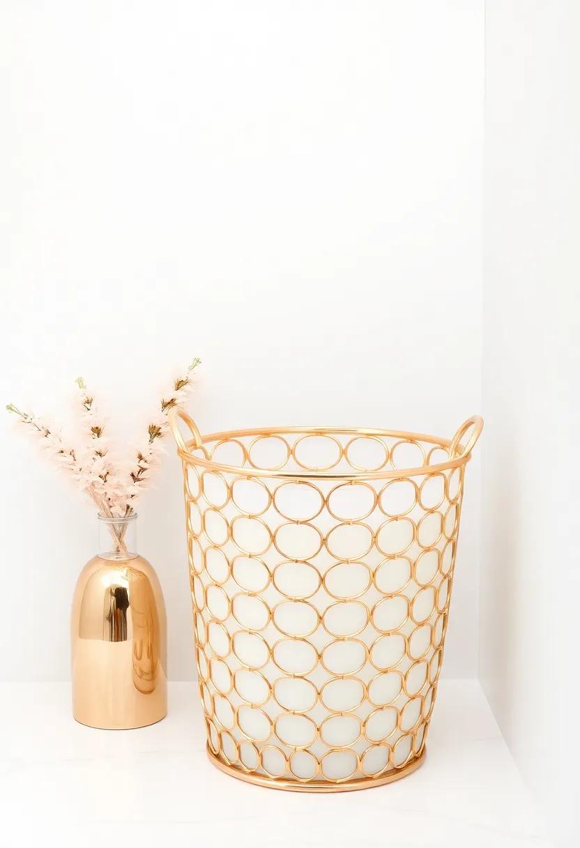 When it comes to elevating the ambiance of your powder room, a decorative waste basket goes beyond mere functionality. Choose a design that harmonizes with your overall decor scheme, transforming a utilitarian item into a statement piece.Opt for materials such as woven rattan, metallic finishes, or ceramic glazes that can complement tiles, sinks, or wall colors, adding a touch of elegance to the space.Add whimsical patterns or chic graphics that resonate with your personality, and watch how this simple accessory becomes a talking point for guests.