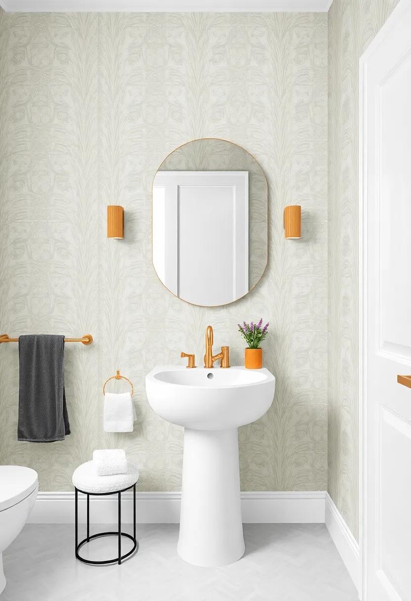 Eyecatching Wallpaper: Choose bold or subtle wallpaper to create a stunning backdrop that defines your powder room’s character