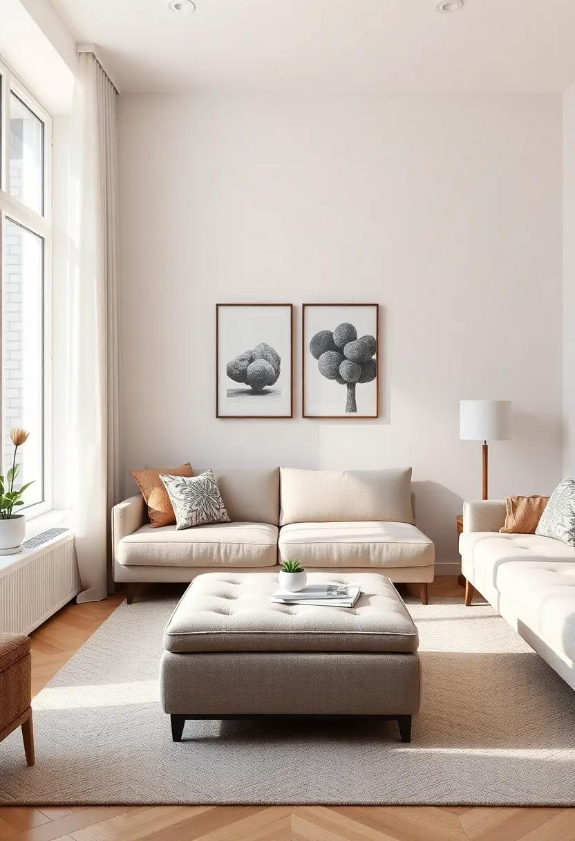 A multifunctional ottoman is a delightful addition to any cozy small living room, offering more than just a place to rest your feet. With its cleverly concealed storage compartment, you can tuck away blankets, magazines, or even toys, keeping your space neat and effortlessly organized. Available in various designs and materials, thes versatile pieces can seamlessly complement your decor while making a bold statement in your living area. Imagine a plush, tufted ottoman in a rich fabric that invites comfort and warmth into the room.