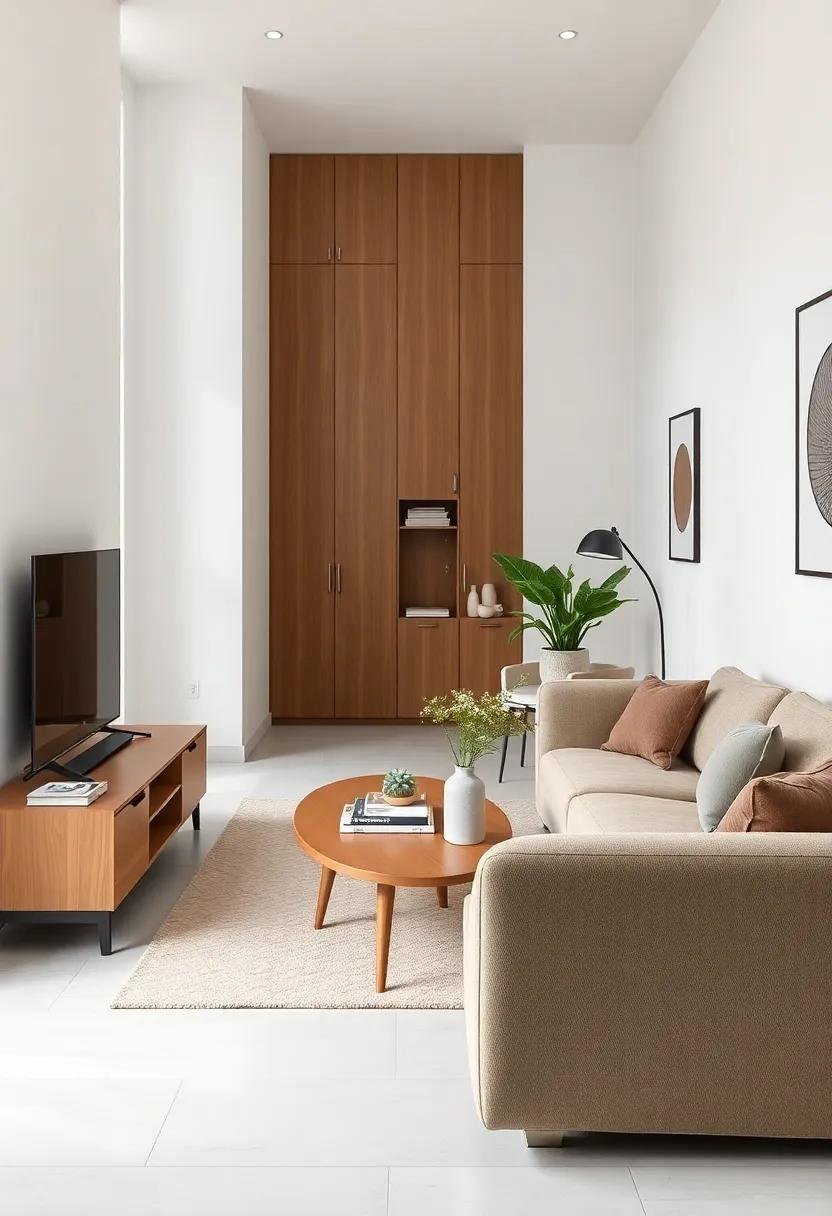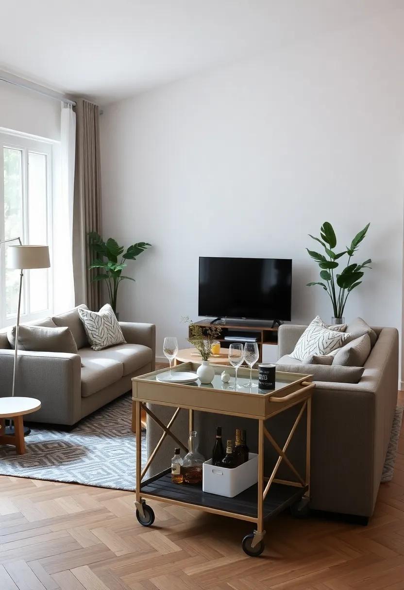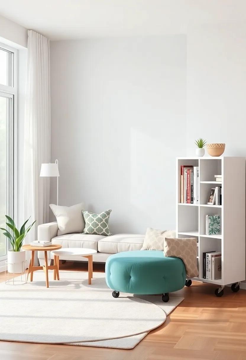 Add a touch of versatility to your small living room with a portable bookcase on wheels. This innovative piece of furniture not only serves as a stylish storage solution for your favorite novels and decorative items but also offers the flexibility to effortlessly move around your space. Imagine having a custom reading nook that can be tucked away or rearranged based on your mood! With wheels, you can easily reposition your bookcase to direct light from a window or to create cozy corner seating during a gathering.