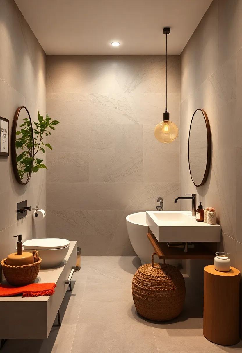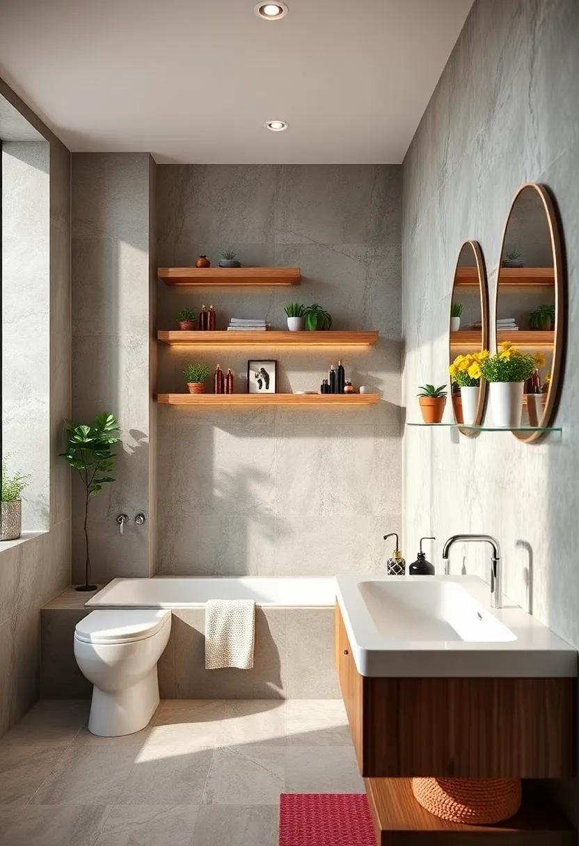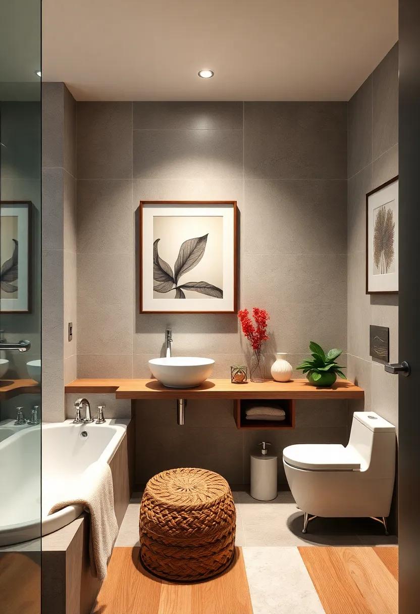 To weave your personality into every corner, think outside the box with your wall art. Hang a rotating display of framed photographs or inspirational quotes that resonate with you, allowing visitors a glimpse into your passions and journey. Consider a colorful shower curtain as the artistic centerpiece or bold graphic tiles that add a splash of flair. A meticulously arranged display shelf can also hold an array of curated items, such as travel souvenirs, or a collection of artisanal candles that provide ambiance, enhancing both style and serenity. This careful composition not only uplifts your daily routine but also reflects who you are.