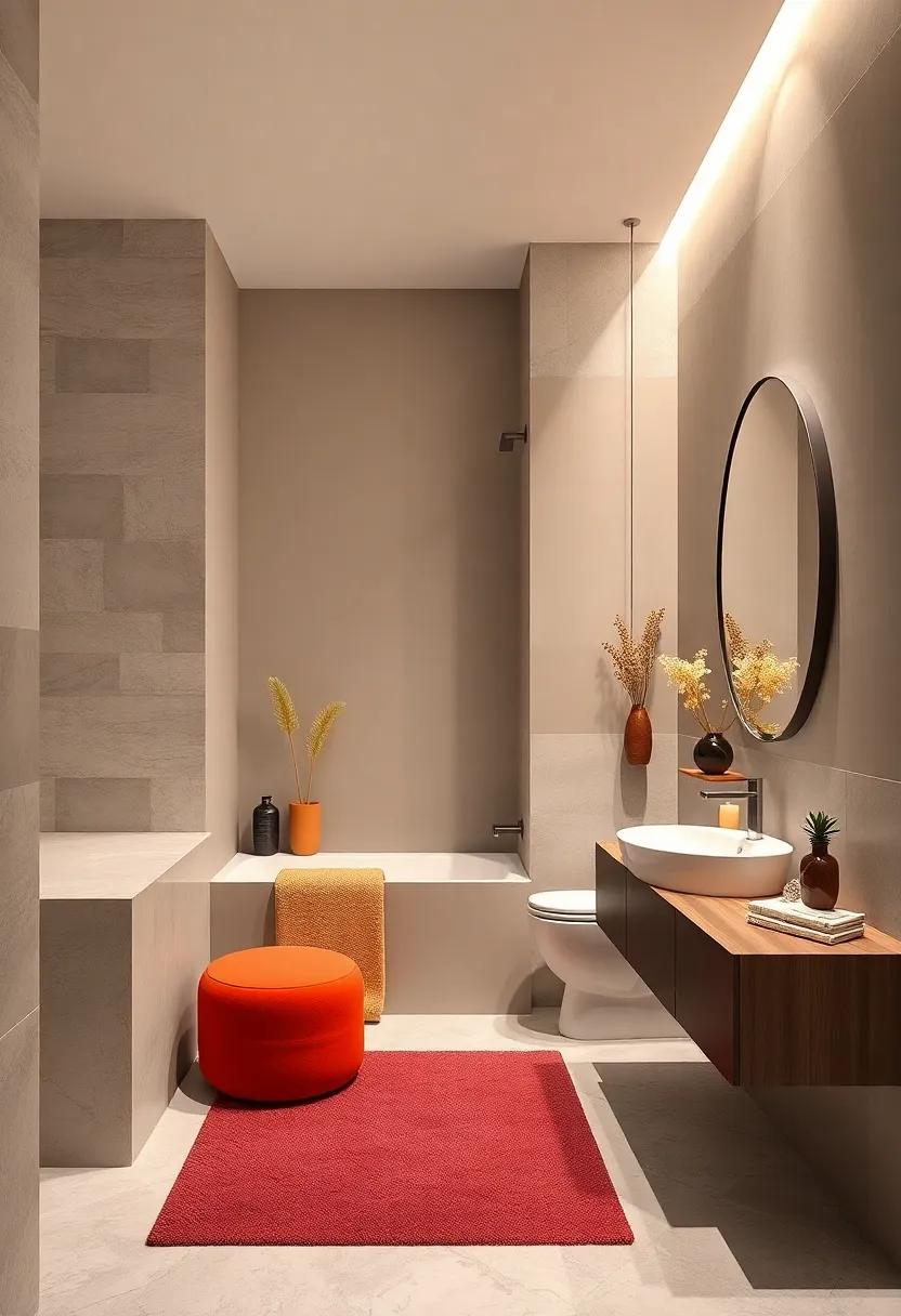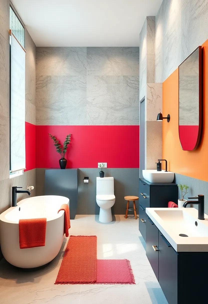 Incorporating these vibrant tones into your bathroom doesn’t have to be restricted to paint. Accessories like towels, rugs, and even toiletries can follow the color blocking technique, allowing you to mix and match to create a cohesive look. A well-curated mix can add both energy and order to the space. For instance, you might create a table to showcase your color choices and how they break down into different elements: