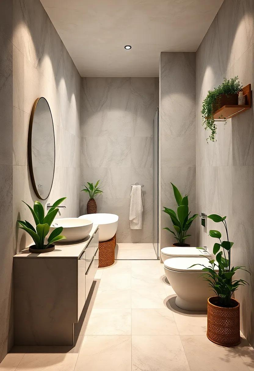 Wall-mounted sinks and vanities are the ultimate way to achieve a clean look that prioritizes openness. These designs not only save valuable floor space but also give your bathroom a modern edge. Pair your sleek installations with large mirrors to reflect light and create an illusion of depth. To further accentuate the airy atmosphere, choose soft color palettes like whites, pastels, or light greys that foster tranquility. Additionally, incorporating greenery through hanging planters can enliven the minimalist approach, inviting a sense of nature into your freshly simplified oasis.