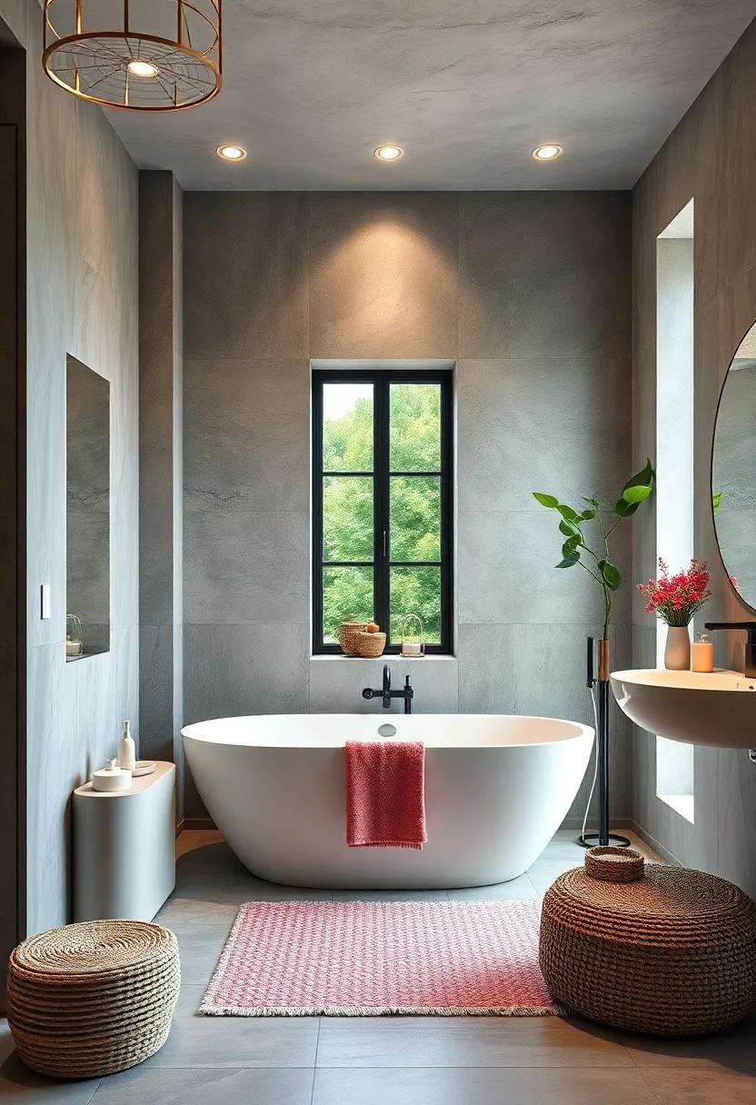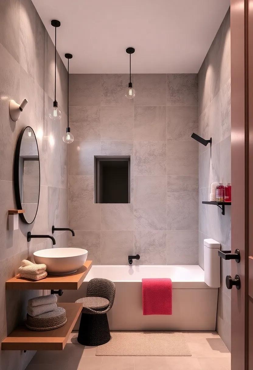 Transform your bathroom from bland to beautiful with the right lighting fixtures. Say goodbye to generic overhead lights and welcome striking pendants that serve as both functional and artistic elements. Hanging designs in eye-catching materials such as brass, glass, or ceramic can create a stunning visual impact while providing illumination that sets the mood for relaxation. Consider bohemian-inspired woven light cords or sleek, minimalist fixtures that complement your decor style. These unexpected touches not only brighten the space but also make a bold statement, giving your bathroom a contemporary edge.