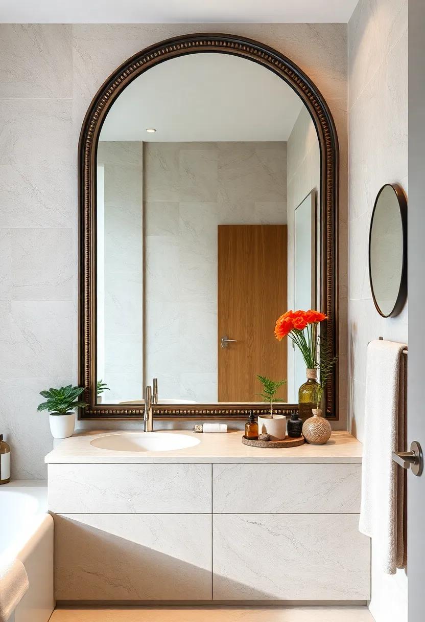 For a truly modern flair, opt for framed mirrors that complement your existing décor. Whether it’s a sleek, minimalist frame or an ornate, vintage design, the right mirror can serve as a stunning focal point. Explore unique shapes such as round or asymmetrical mirrors that can add visual interest. Additionally, incorporating mirrored accessories like a chic shelf or a bathroom cart not only serves a purpose but also reflects light, further amplifying the ambiance.Don’t shy away from experimenting with different finishes, like matte or metallic, to customize the effect according to your style.