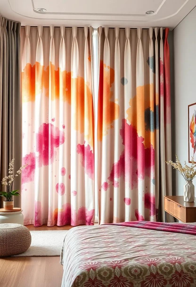Bold Printed Pleated Curtains: Add an artistic touch with vibrant printed fabrics that feature plush pleating, perfect for eclectic or bohemian decor