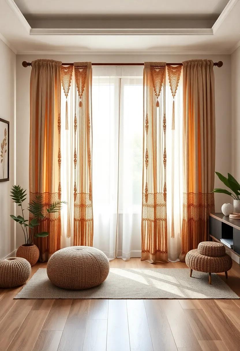 - Layering with Sheers: combine macrame panels with light sheer curtains for a dreamy effect.