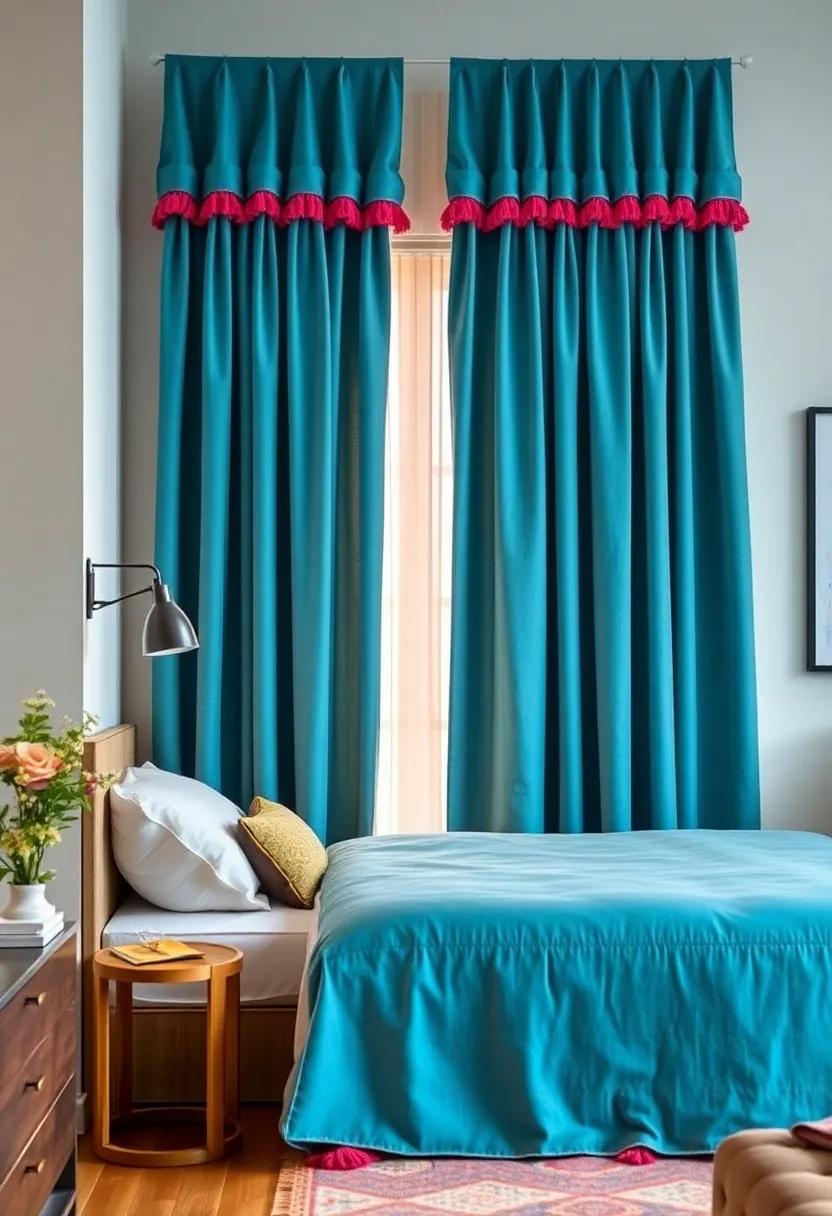 Colorful Tassel Trim: Add playful flair to traditional pleated curtains with colorful tassel trim, perfect for a fun yet sophisticated touch in any room
