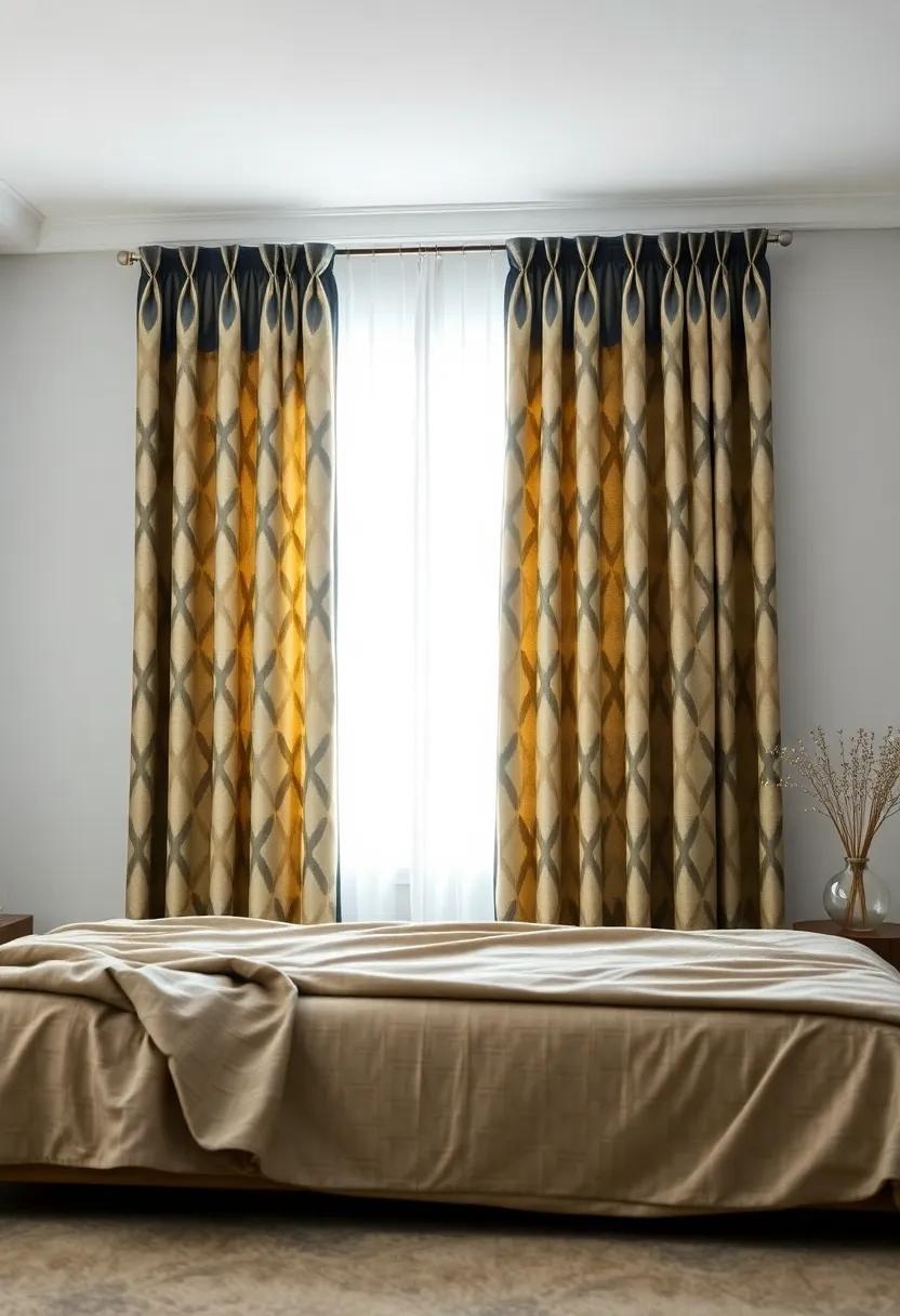Subtle Stripe Curtains: Thin, horizontal stripes on pleated panels can create the illusion of height while adding sophistication and elegance to any bedroom