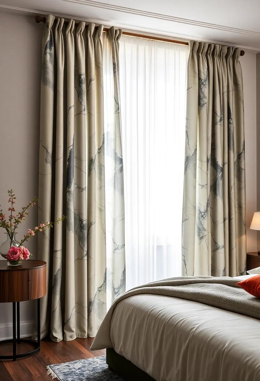 Marble Print Curtains: For a fresh, modern aesthetic, consider curtains with elegant marble prints, accented by pleats that enhance their luxurious appeal