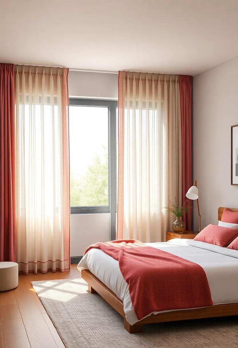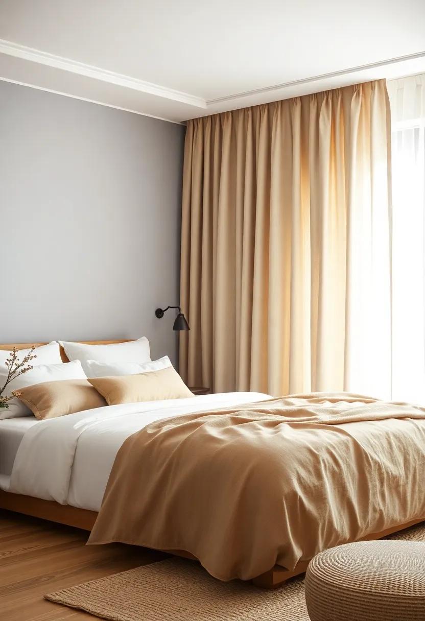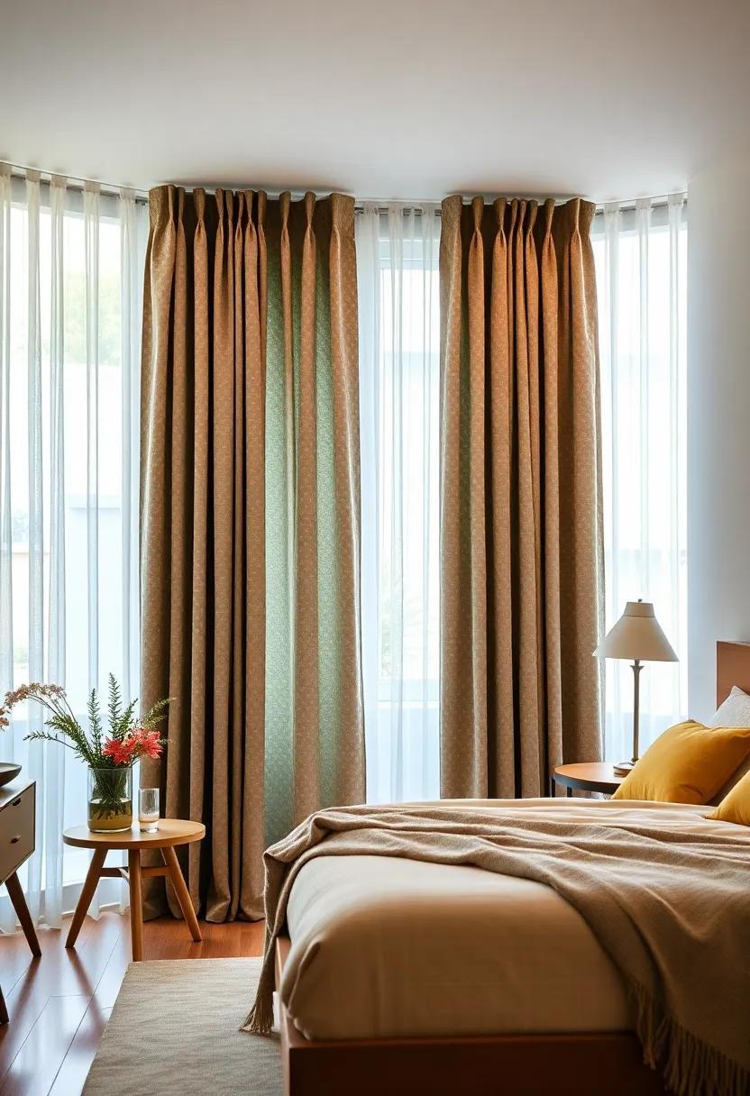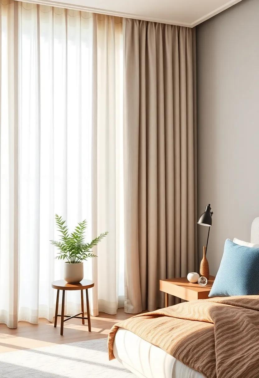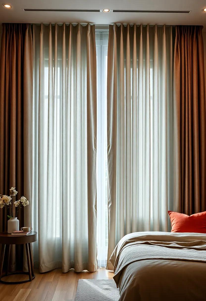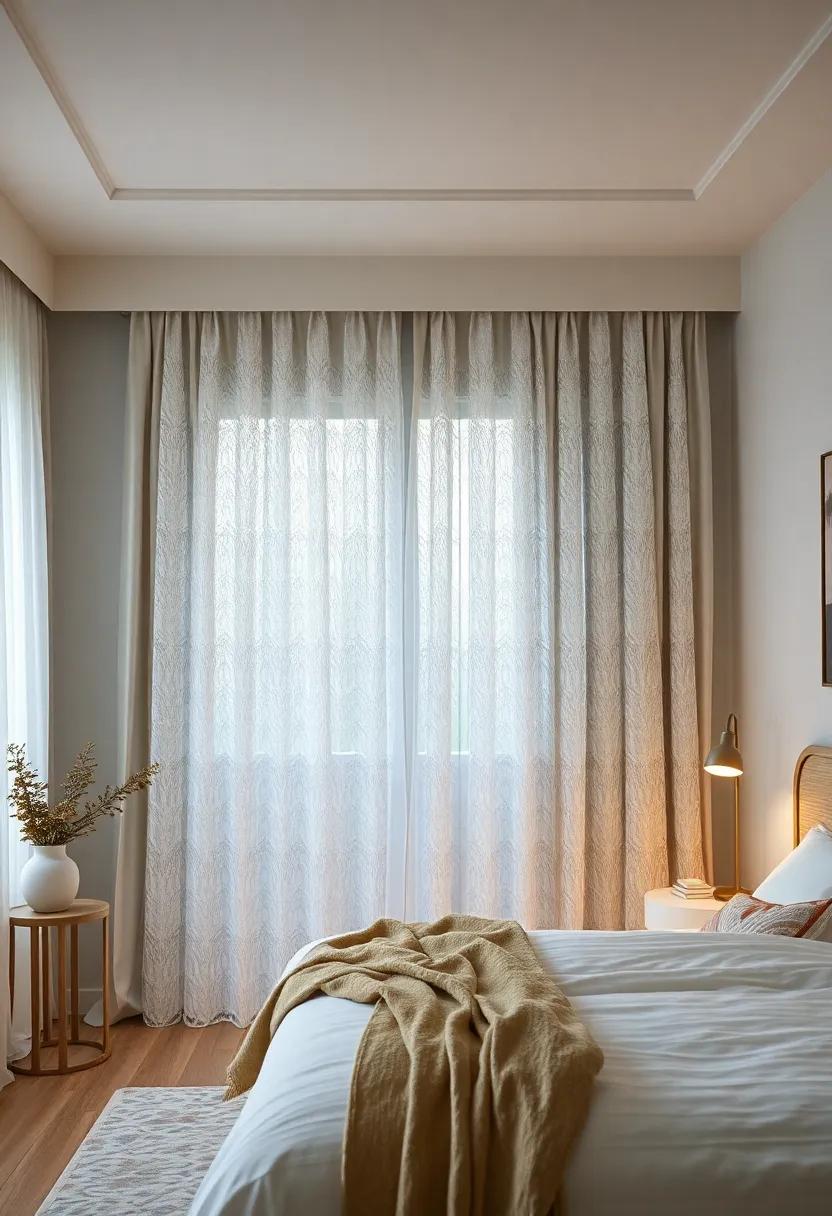 Sheer Voile Panels: Layering sheer, pleated curtains brings a light and airy feel to your bedroom, allowing natural light to filter softly throughout the space